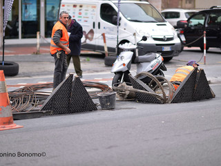 Sanremo: operai al lavoro in corso Cavallotti per la posa della fibra ottica