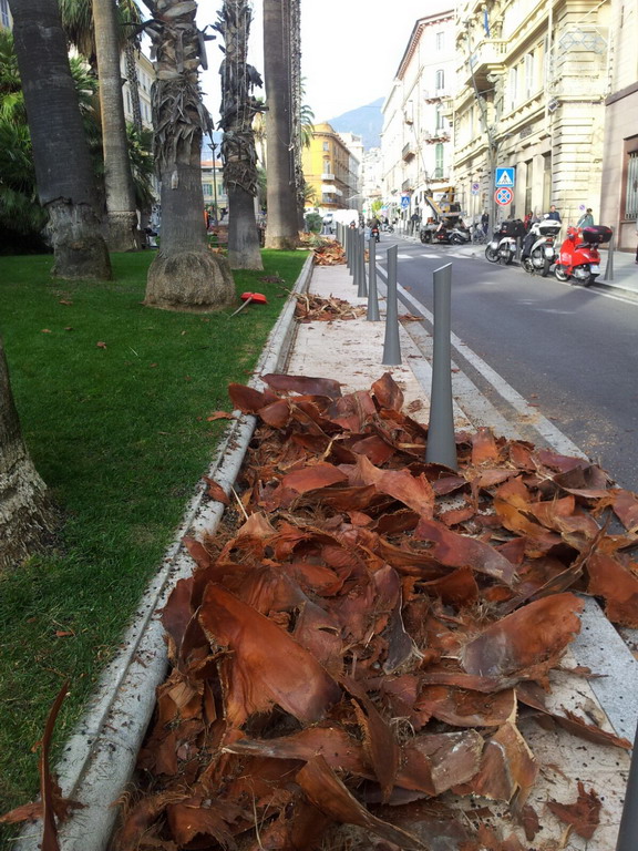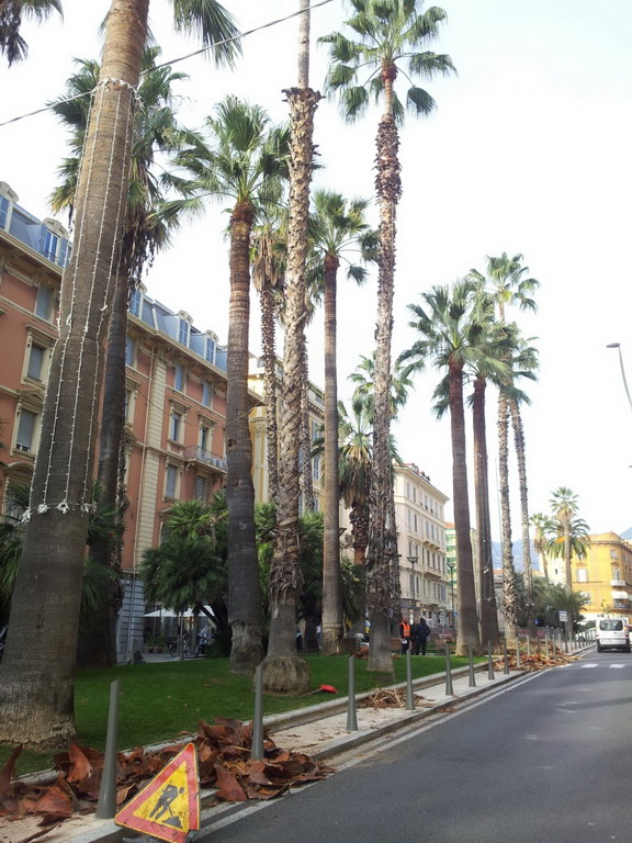 Sanremo: pulizia delle palme in corso Mombello dopo l'installazione delle luminarie, serve più coordinamento