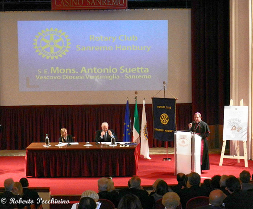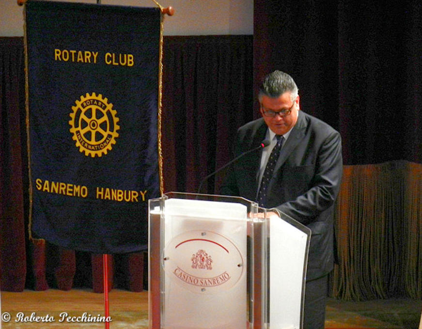Dopo il saluto di benvenuto del Presidente Antonio Leoni, a tutti i partecipanti alla cerimonia, un saluto di augurio e ringraziamento al R.C. Sanremo Hanbury è stato dato dal Sindaco di Sanremo Alberto Biancheri, per il Casinò era presente il Direttore Generale Ing. Giancarlo Prestinoni, presente anche il Vescovo della Diocesi Ventimiglia-Sanremo Mons. Antonio Suetta, il Presidente della Provincia di Imperia Fabio Natta e l'assistente del Governatore del Distretto 2032 I'Ing. Franco Formaggini.