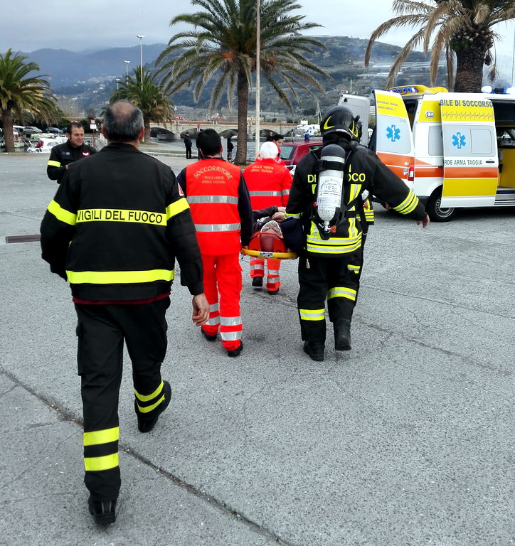 Arma di Taggia: esercitazione antincendio questa mattina alla Darsena, in azione Vvf, 118 e Guardia Costiera