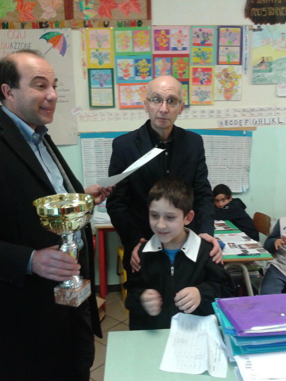 Visita dell’assessore alle Attività Educative del Comune di Imperia, Fabrizio Risso, nella scuola di largo Ghiglia per consegnare un premio a Mattia Callari, vincitore nei giorni scorsi del premio Munoz assegnato dal Movimento Apostolico Ciechi (Mac).