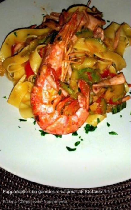 Primo posto assoluto, con 128 voti: pappardelle con gamberi e calamari di Stefania