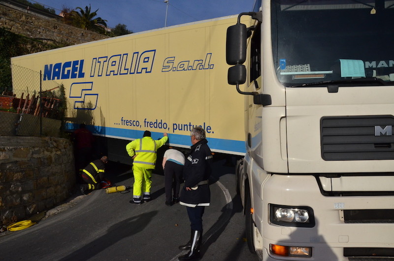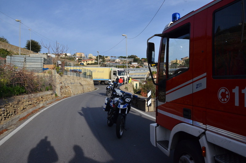 Sanremo: camion rimane incastrato, alle 16.40 via Val d'Olivi è tornata ad essere transitabile