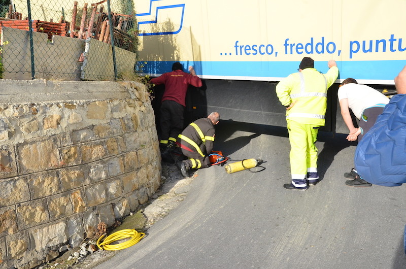 Il conducente del mezzo, con targa romena, si era fidato del navigatore pensando che lo stesse portando in valle Armea. Purtroppo l'autista del camion ha scoperto troppo tardi che quella strada era stretta per riuscire a passare e tornare sulla via principale sulla costa.