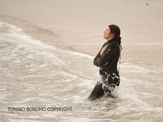 Tonino Bonomo ha immortalato i molti turisti che oggi si sono cimentati con le onde.