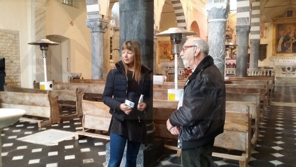 Una troupe di Rai 3 questa mattina in visita alla Pieve di San Nazario e Celso di Borgomaro. Il servizio andrà in onda sabato prossimo per il 'Settimanale di Rai Tre'.