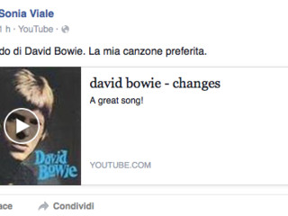 Anche Sonia Viale, su facebook, pubblica una canzone di Bowie, "Changes" commentando: "Un ricordo di David Bowie. La mia canzone preferita".