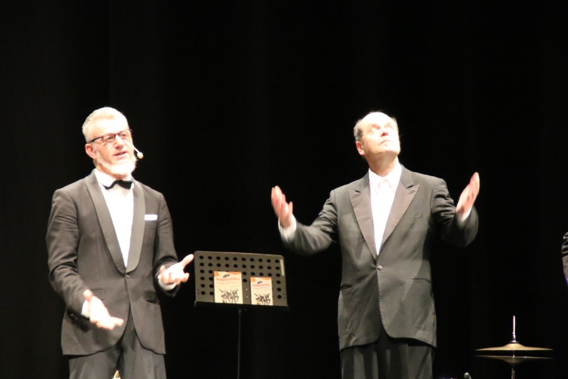 Irresistibili e geniali alcuni capitoli, come quello sugli strumenti da evitare o quello sulla suddivisione per generi musicali, ma nel complesso tutto lo spettacolo mantiene alta l’attenzione del pubblico, che viene coinvolto ripetutamente e partecipa con entusiasmo anche in improbabili quiz. Nel finale il ritmo aumenta, sostenuto anche dai battimani della sala e quando arriva il momento dei saluti nessuno si vuole alzare. Dopo due divertentissimi bis, alla fine gli eclettici artisti piemontesi, (diventati famosi anche in tv con la trasmissione di Serena Dandini “Parla con me”), visibilmente stanchi, ma divertiti lasciano il palco.