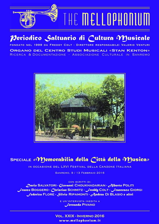 "Si tratta del fascicolo n° 29, sempre ricco di articoli, studi, spigolature di cultura musicale, in questo caso imperniate della storia artistica di Sanremo: personaggi, vicende note o dimenticate, documenti legati al mondo delle sette note, non solo al Festival, ma anzi soprattutto alla musica classica, al jazz, al folk. Molti sono i collaboratori che contribuiscono a rendere interessante e prezioso questo numero: Dario Salvatori, Giovanni Choukhadarian, Franco Boggero, Marco Scolesi, Andrea Di Blasio, Freddy Colt, Francesco Giorgi, Silvio Ripamonti, Federica Flore, Christian Schmitz, Alberto Politi, Marco Innocenti, Alfredo Moreschi, Marco Perotti.