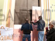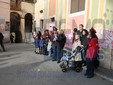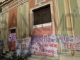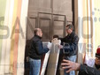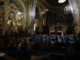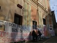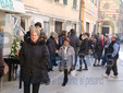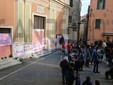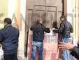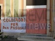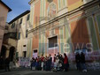 I fedeli di Coldirodi al termine della Messa hanno chiuso nuovamente le porte della Chiesa con un finto muro, così come era avvenuto stamattina.