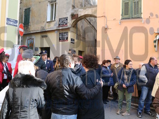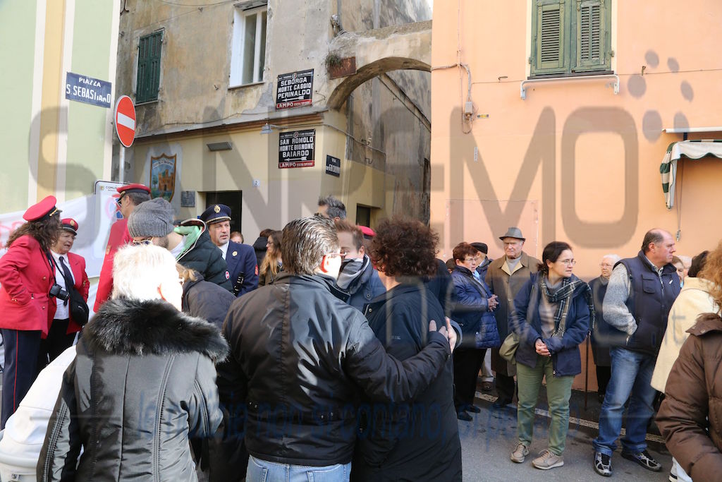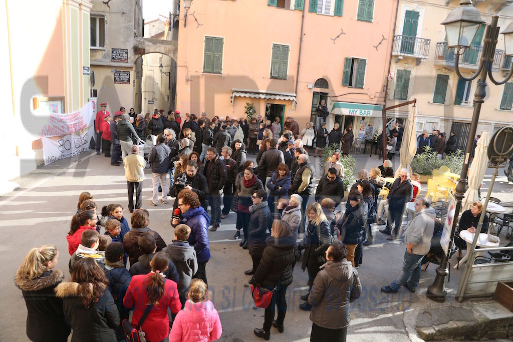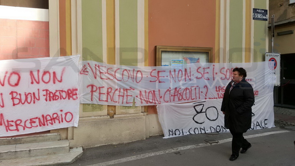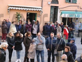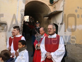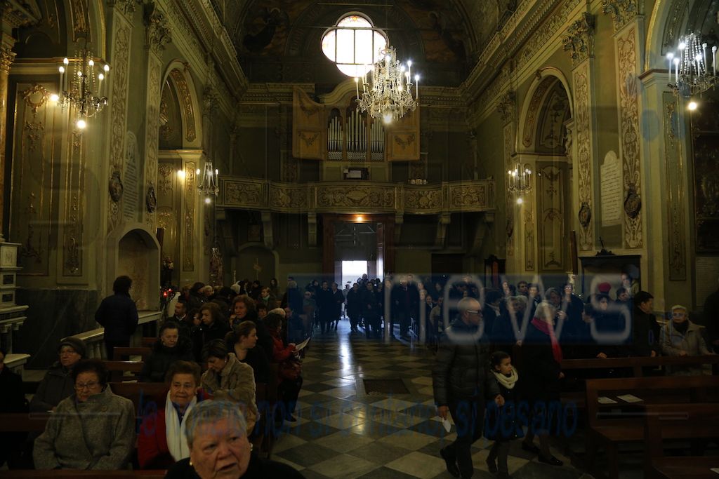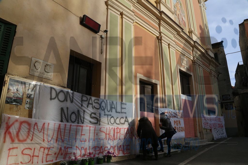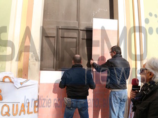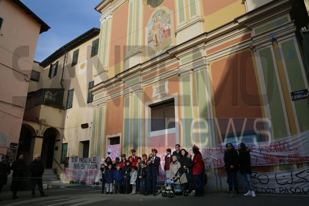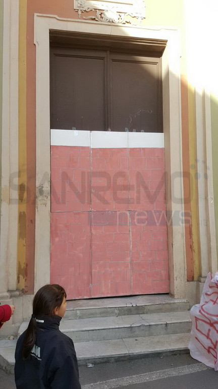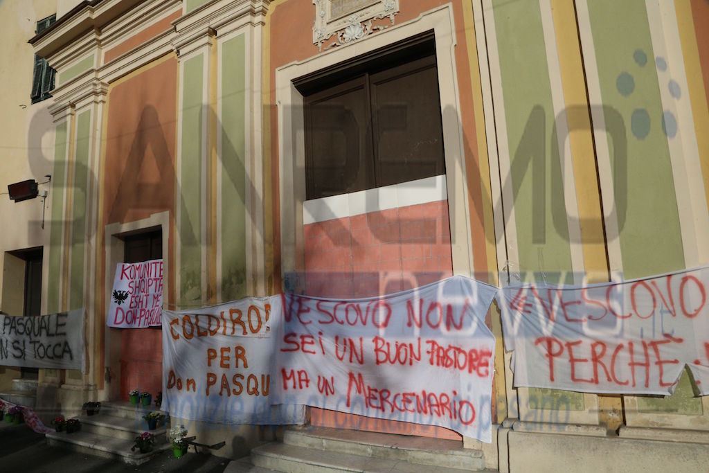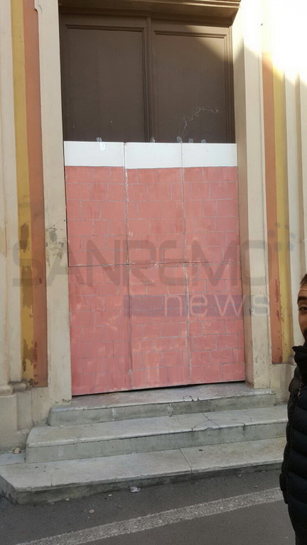 I fedeli di Coldirodi al termine della Messa hanno chiuso nuovamente le porte della Chiesa con un finto muro, così come era avvenuto stamattina.