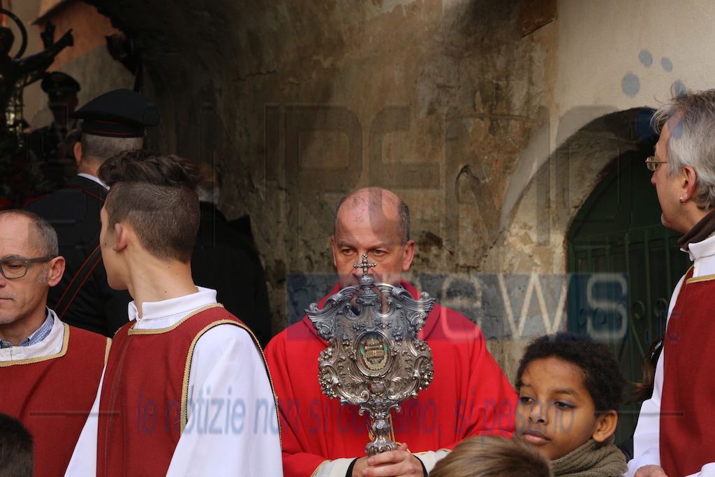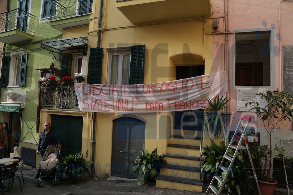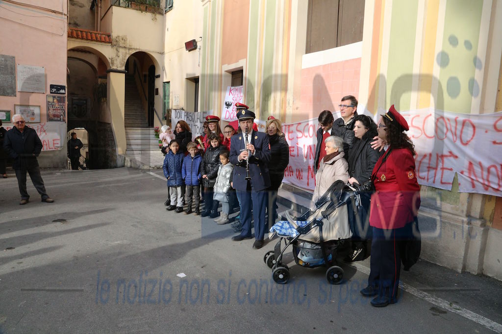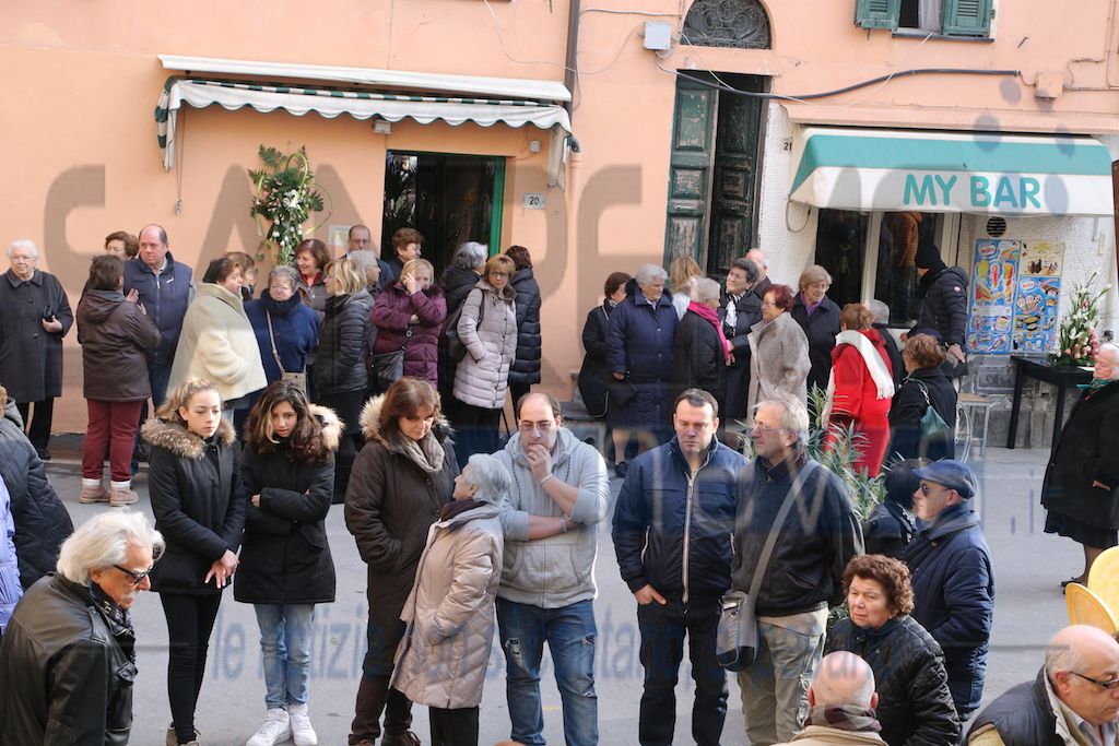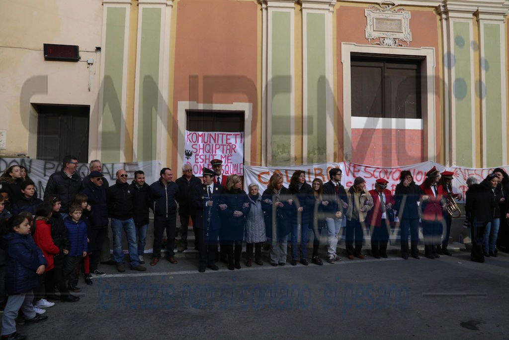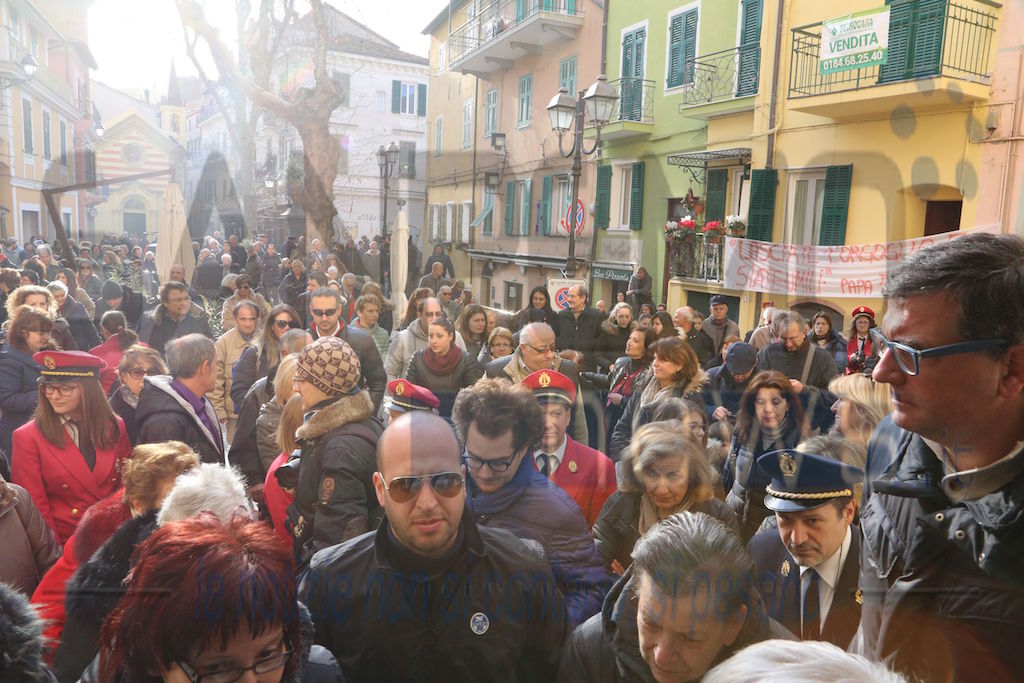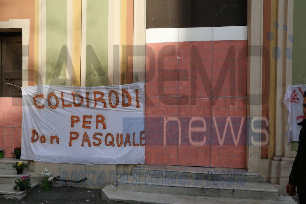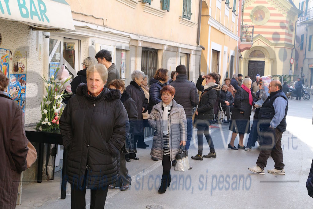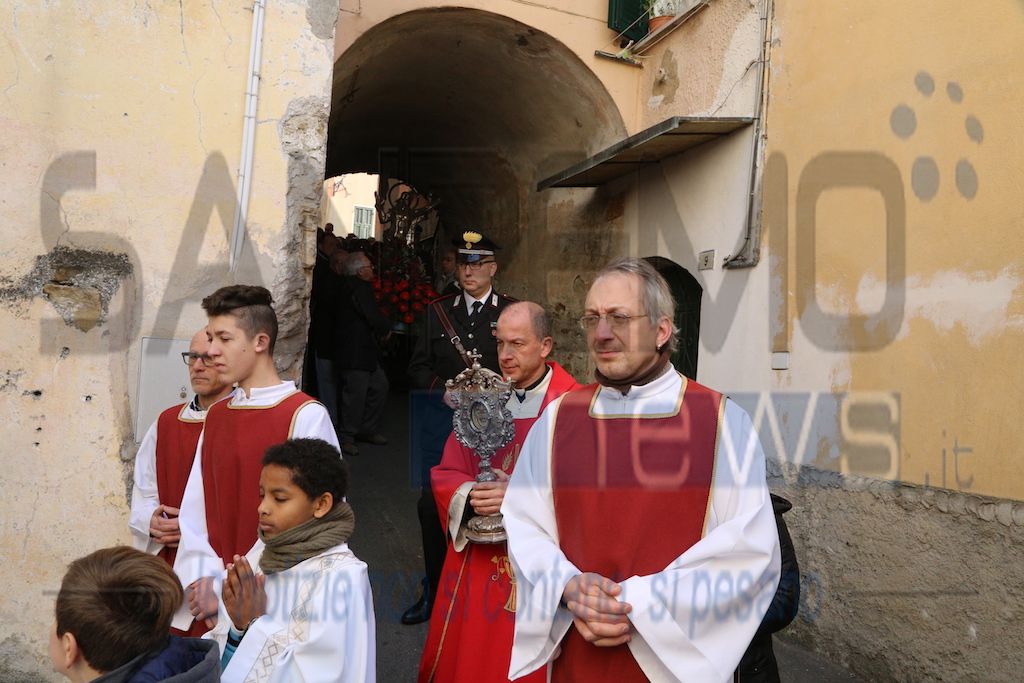 I fedeli di Coldirodi al termine della Messa hanno chiuso nuovamente le porte della Chiesa con un finto muro, così come era avvenuto stamattina.