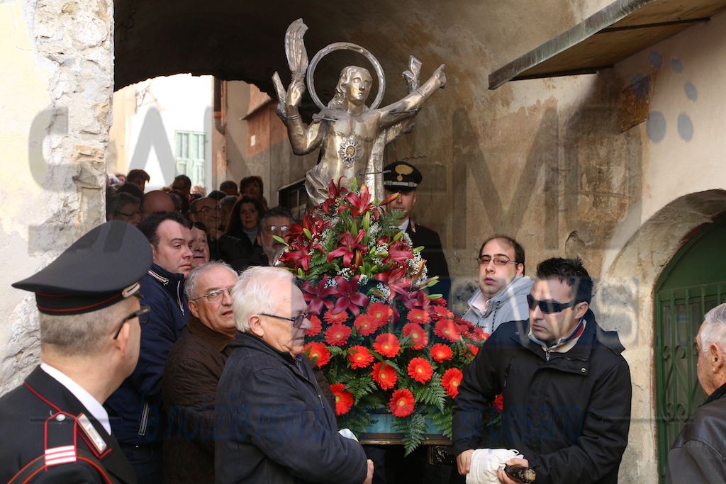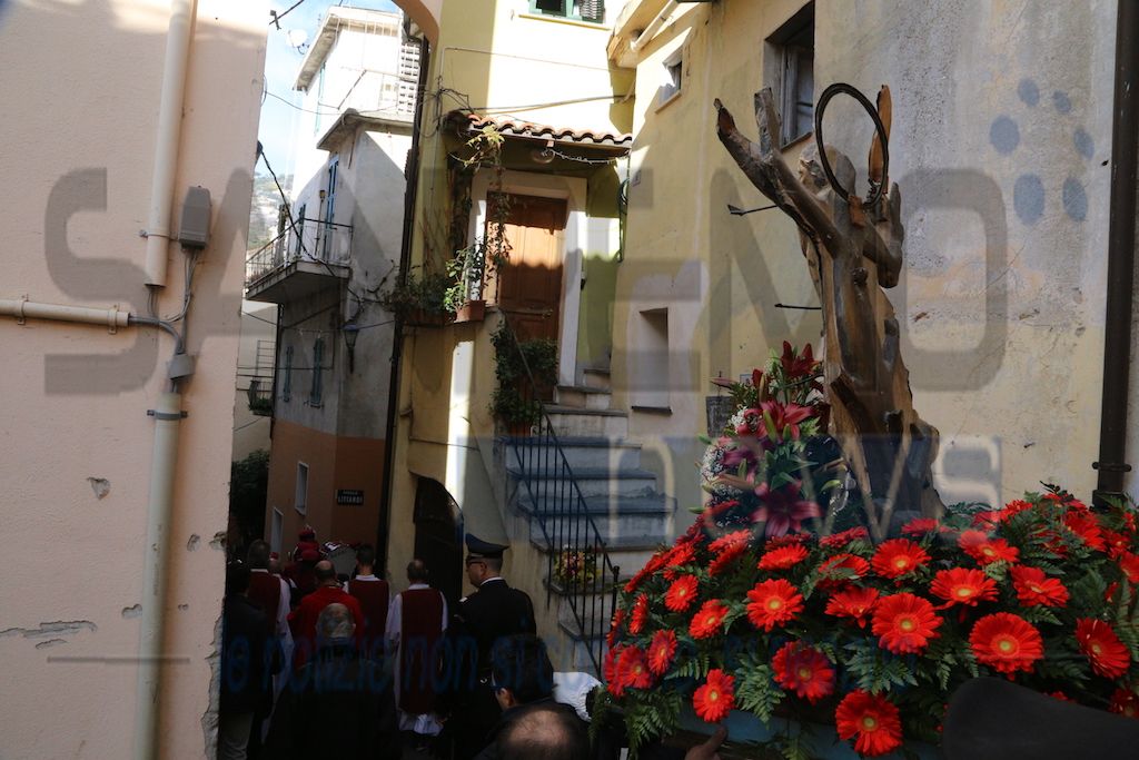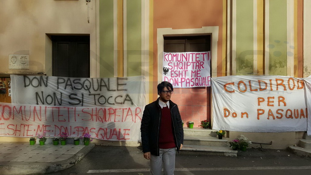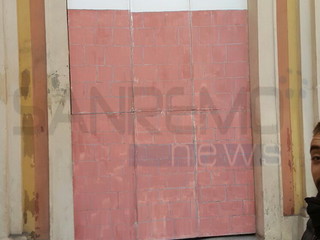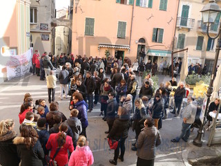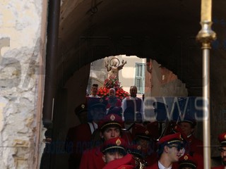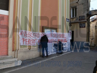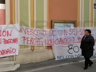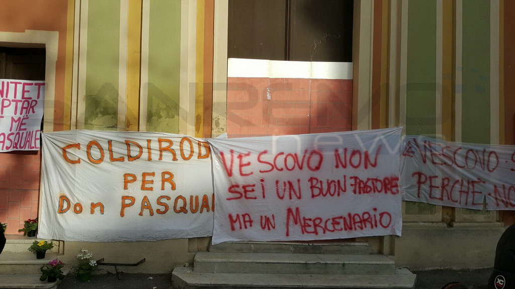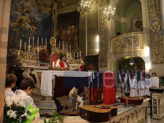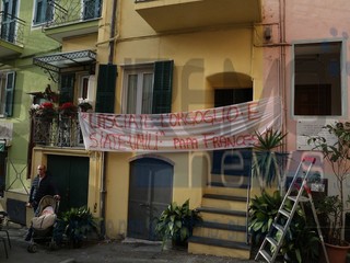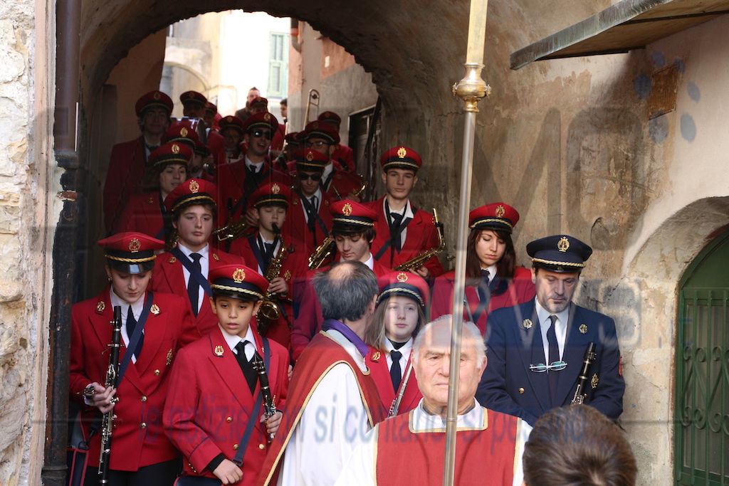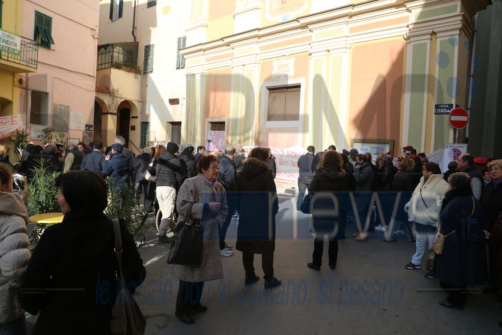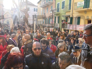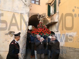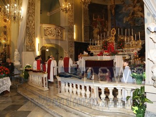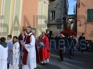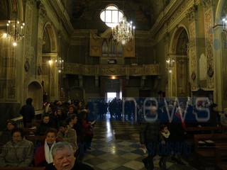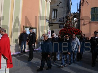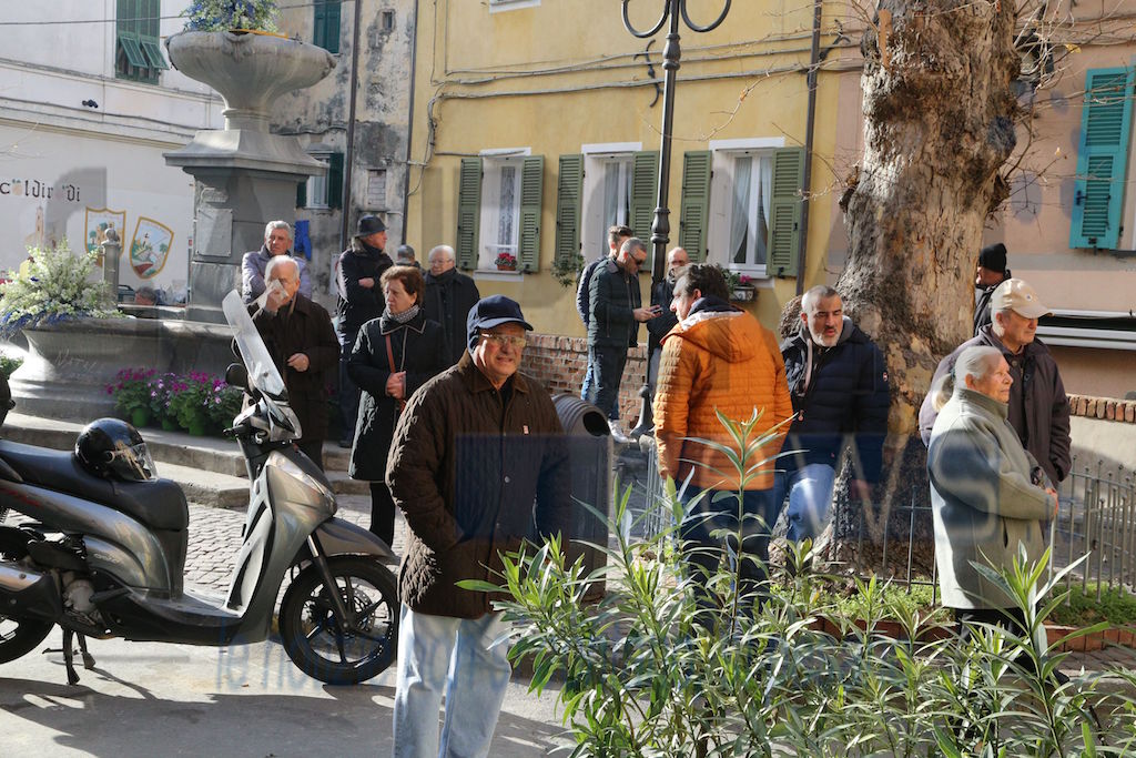 I fedeli di Coldirodi al termine della Messa hanno chiuso nuovamente le porte della Chiesa con un finto muro, così come era avvenuto stamattina.