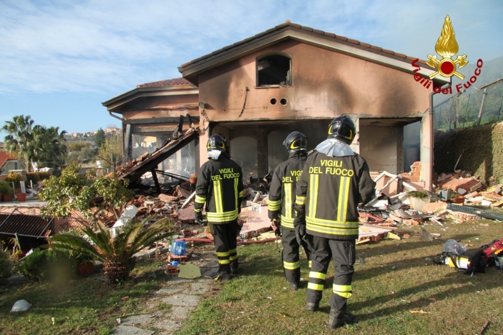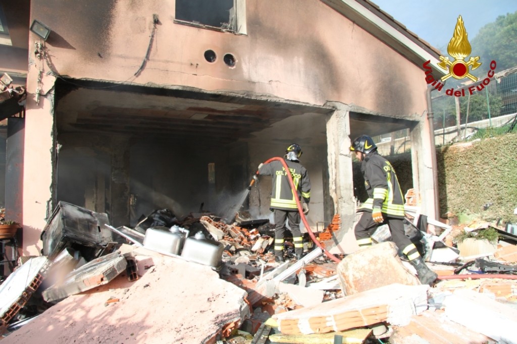 Le foto ed i video dei Vigili del Fuoco dall'interno della villetta sventrata da un'esplosione causata da una fuga di gas. Nell'esplosione è morta una 77enne ed è stato ferito Gabriel Garko