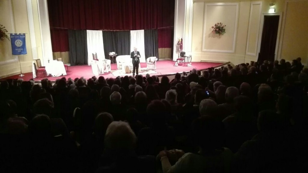 Davanti ad un Teatro del Casinò tutto esaurito, venerdì scorso a Sanremo è andata in scena la Compagnia del Teatro dell’Albero, con una commedia brillante promossa dal Rotary Club Sanremo a favore di un progetto di accoglienza per i bambini di Cernobyl. Il frizzante atto unico dal titolo “Invito a cena con bebè”, è stato brillantemente interpretato dagli attori del Teatro dell’Albero - Loredana De Flaviis, Franco La Sacra, Nicoletta Napolitano, Anselmo Nicolino, Angela Arnolfo - che diretti dall’esperto ed attento regista-scenografo, Carlo Senesi, e supportati dal tecnico Toni Damiano, hanno raccolto applausi a scena aperta, coronando una serata che ha saputo coniugare sorrisi, solidarietà e cultura su un unico prestigioso palcoscenico.