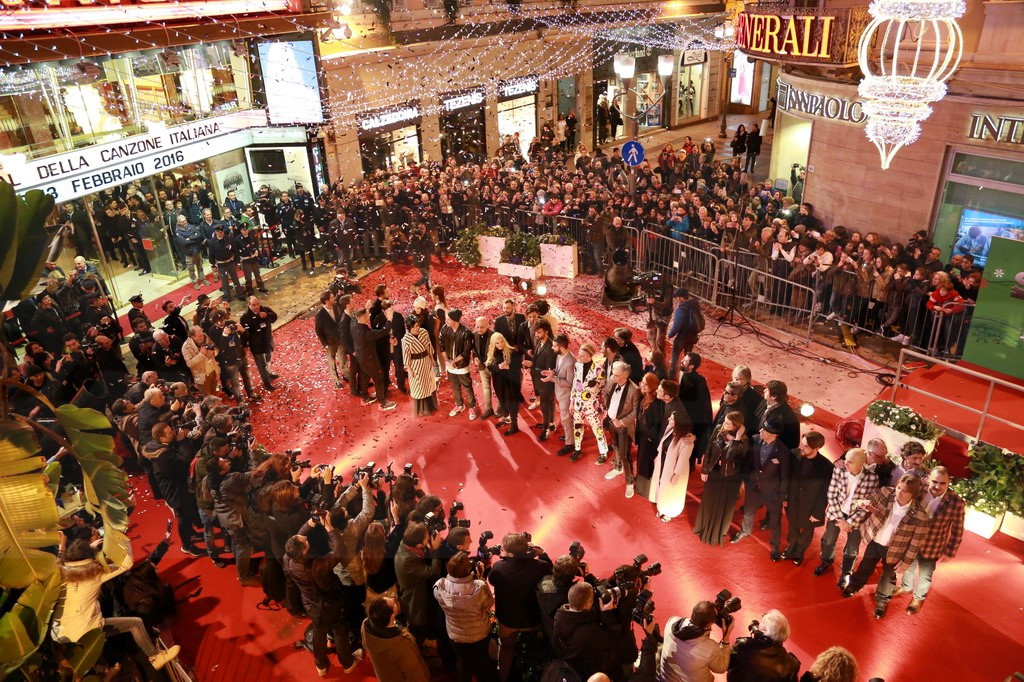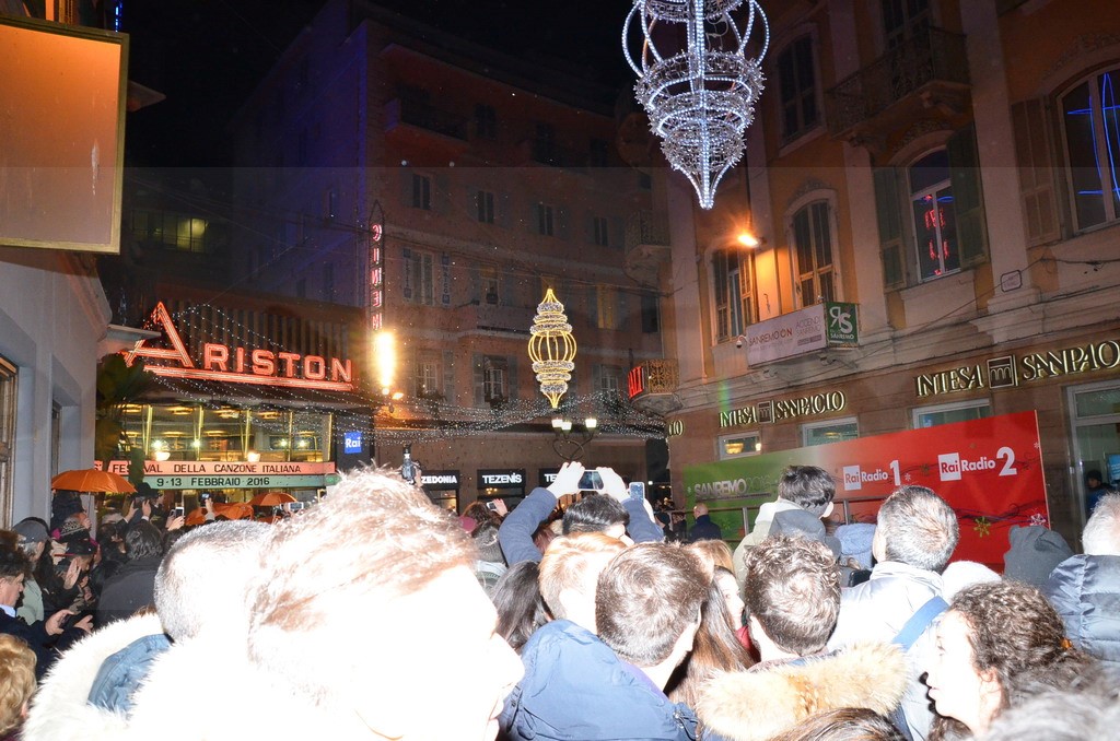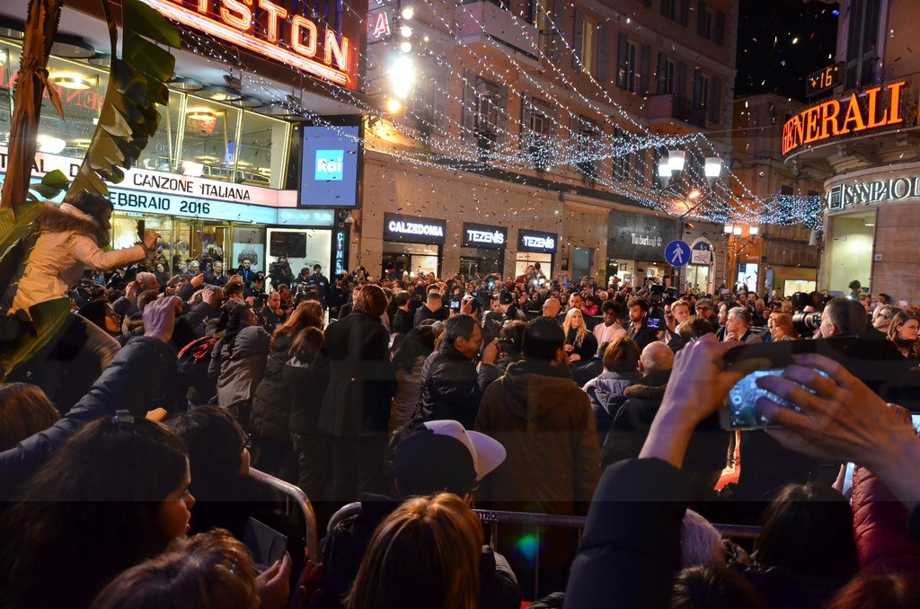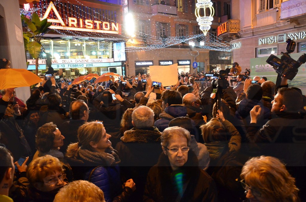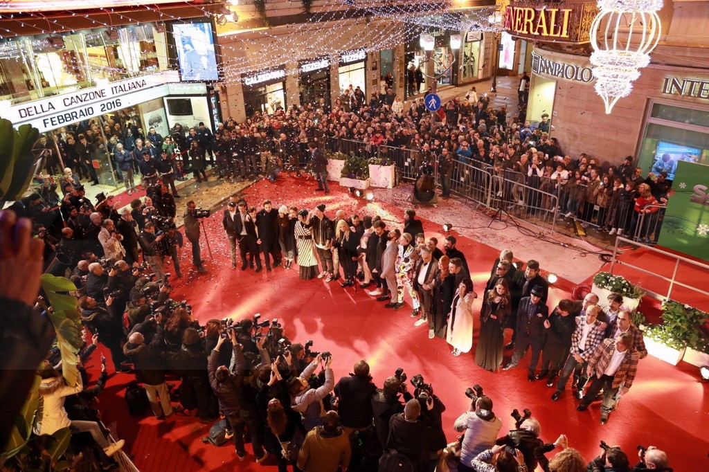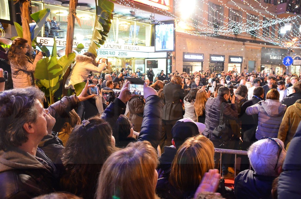 I cantanti in gara hanno sfilato tra due ali di folla. Quanto avvenuto stasera sarà riproposto domani sera per la prima serata della kermesse, prima della diretta televisiva. Sarà una sorta di presentazione dei cantanti. Centinaia di fan in delirio hanno atteso ore in via Mameli e di fronte all'Ariston per vedere da vicino i propri beniamini.