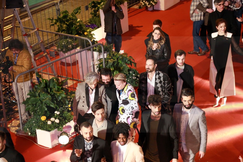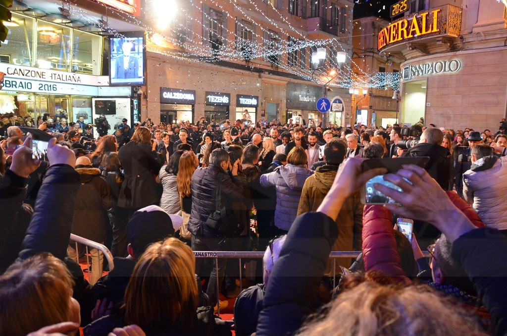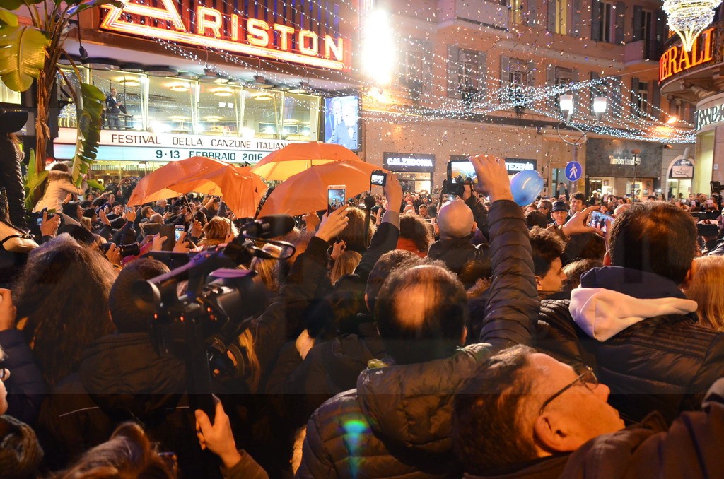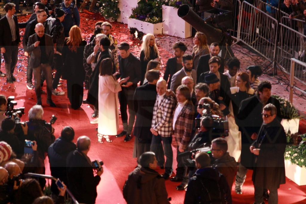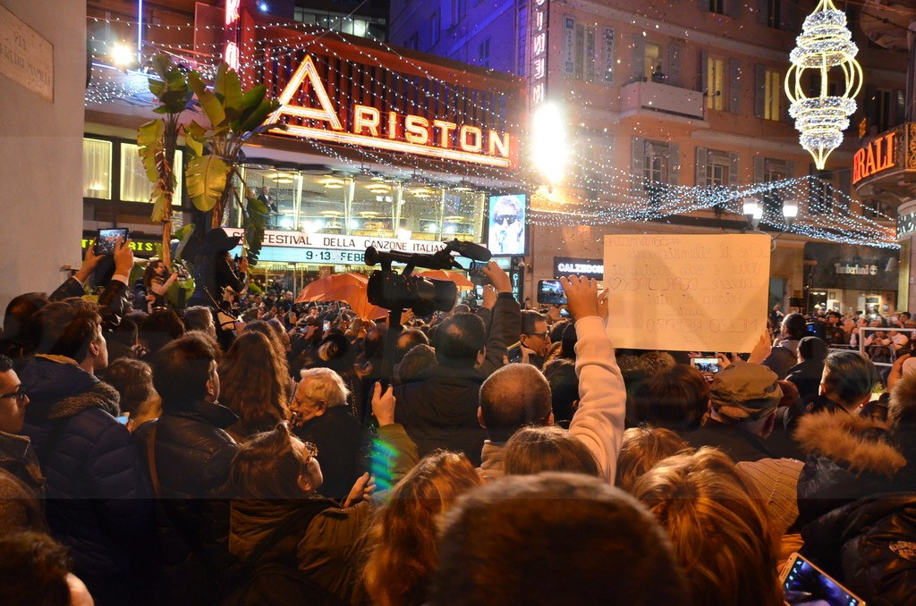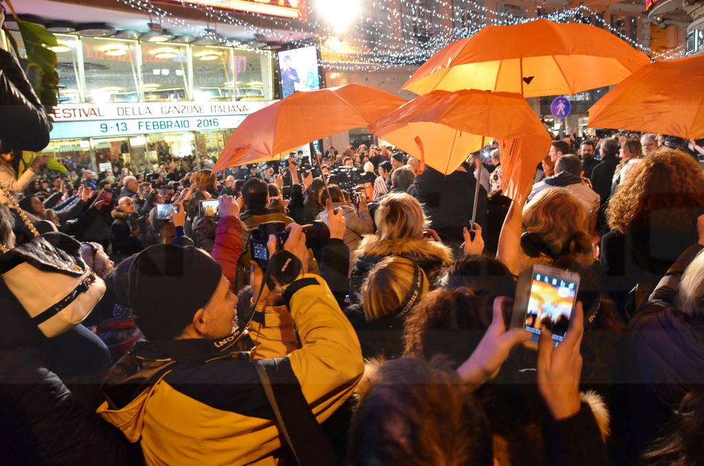 I cantanti in gara hanno sfilato tra due ali di folla. Quanto avvenuto stasera sarà riproposto domani sera per la prima serata della kermesse, prima della diretta televisiva. Sarà una sorta di presentazione dei cantanti. Centinaia di fan in delirio hanno atteso ore in via Mameli e di fronte all'Ariston per vedere da vicino i propri beniamini.
