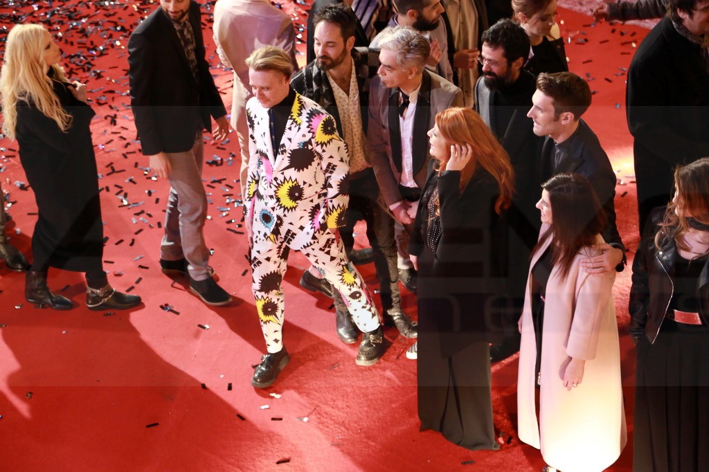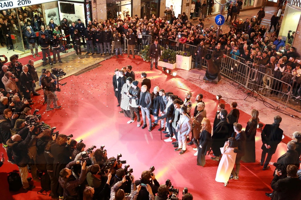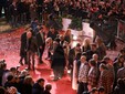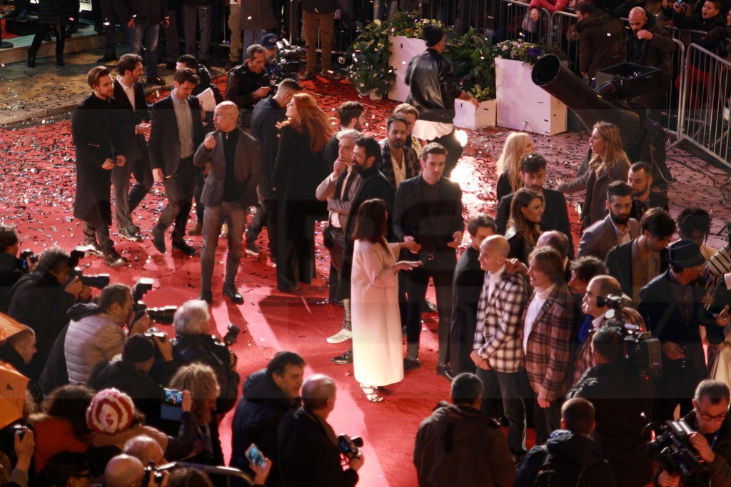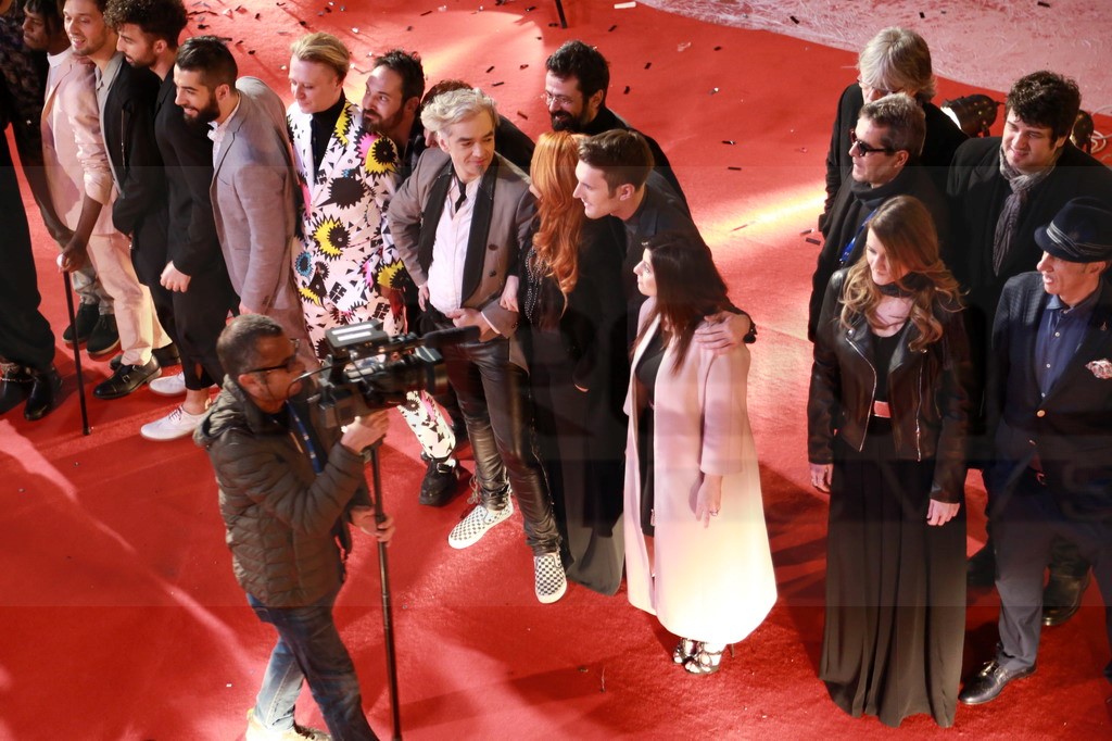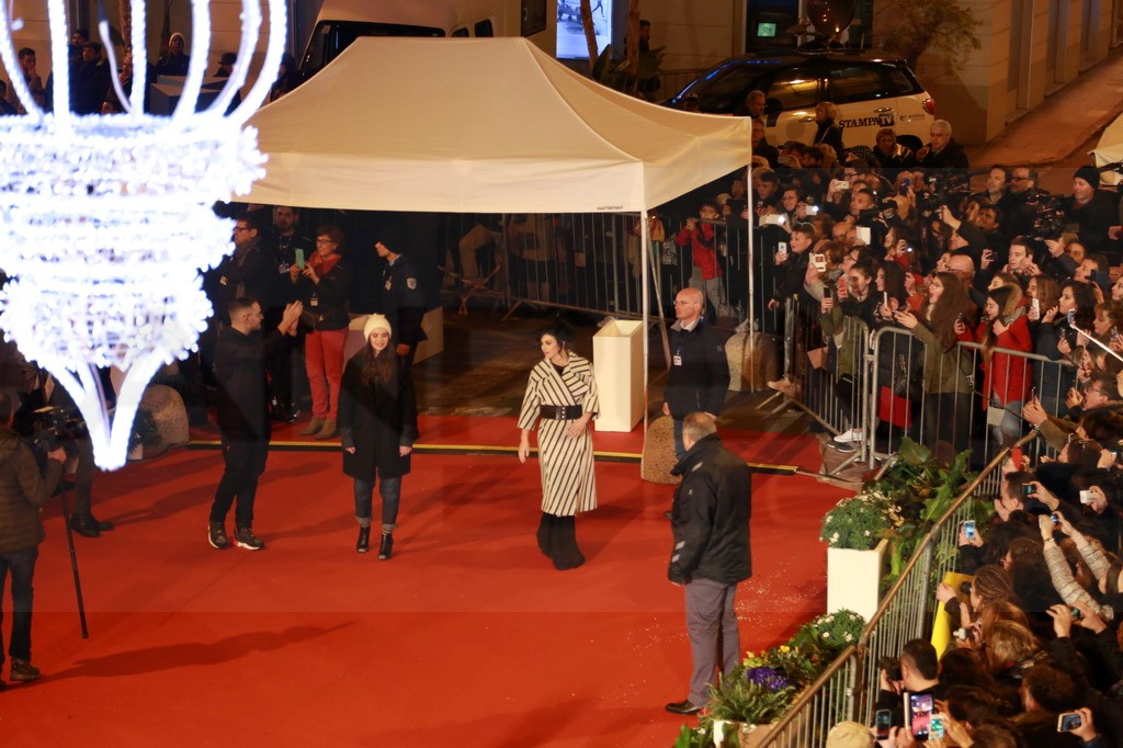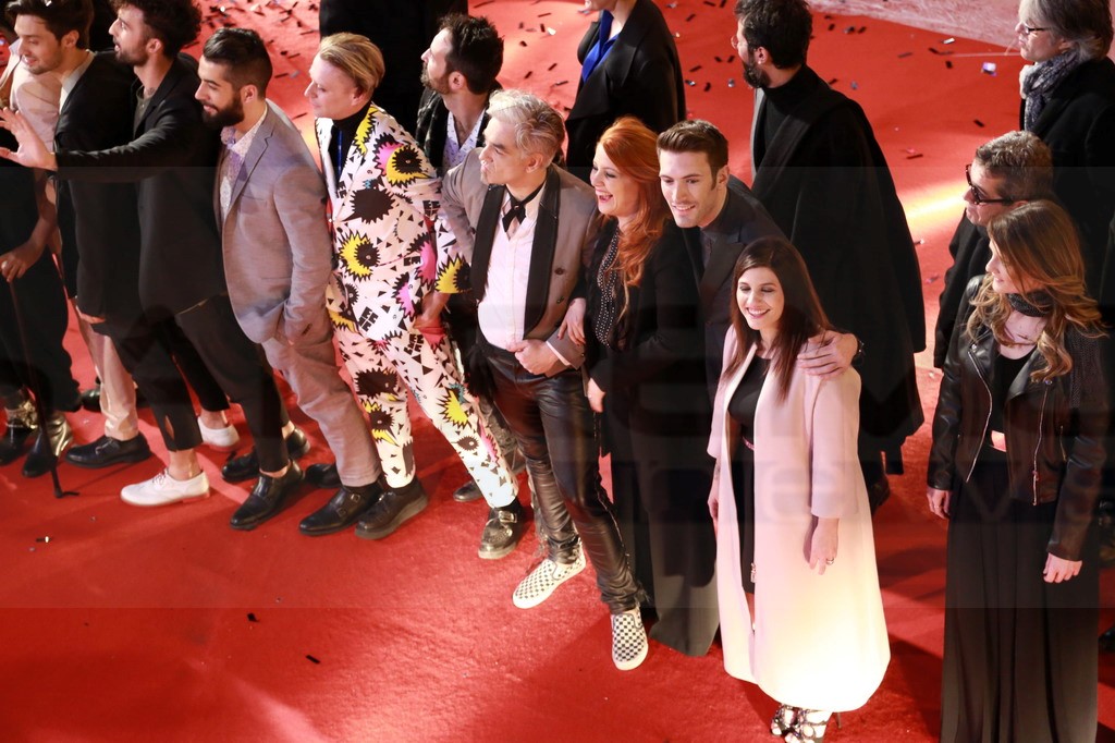 I cantanti in gara hanno sfilato tra due ali di folla. Quanto avvenuto stasera sarà riproposto domani sera per la prima serata della kermesse, prima della diretta televisiva. Sarà una sorta di presentazione dei cantanti. Centinaia di fan in delirio hanno atteso ore in via Mameli e di fronte all'Ariston per vedere da vicino i propri beniamini.