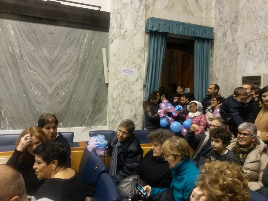 Il Sindaco ha parlato al pubblico presente, circa sessanta persone armate di fiocchi e palloncini rosa e azzurri, tra cui molti esponenti del comitato che si oppone alla chiusura del punto nascite imperiese.