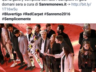 Così su Facebook, Twitter e Instagram il gruppo dei Bluvertigo ha postato le foto di Sanremo News commentando: "Il red carpet sanremese è tradizione! Qui la gallery completa con tutti i Campioni in gara, domani sera a cura di Sanremo news".