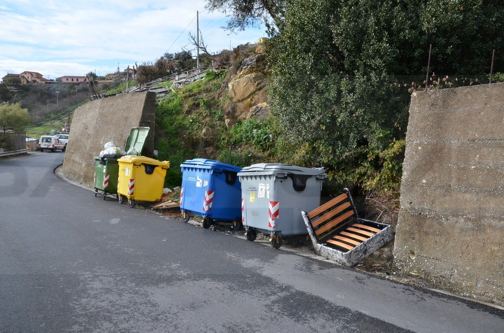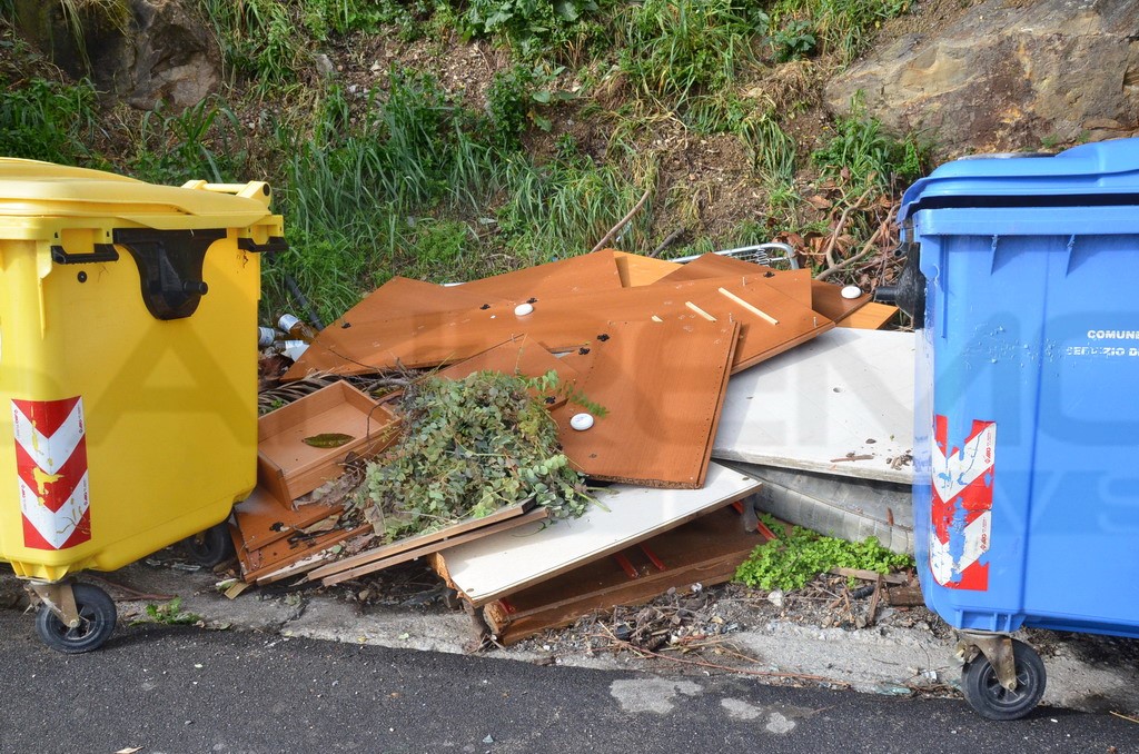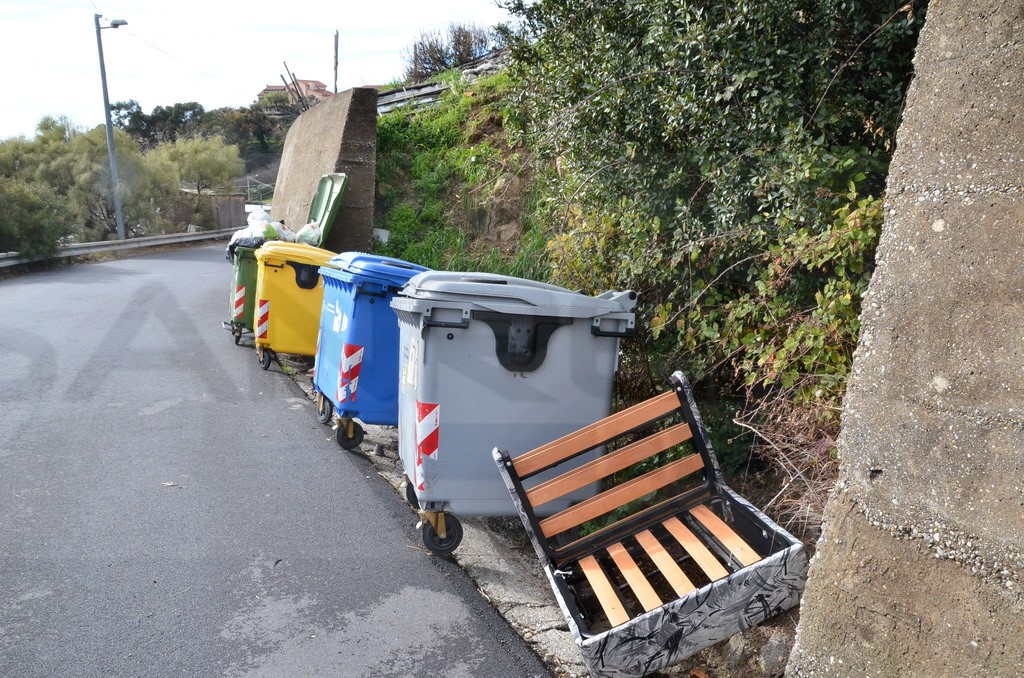 Una discarica a cielo aperto, a fianco dei cassonetti dell’immondizia, a cento metri dal centro di raccolta dei rifiuti ingombranti, in frazione Coldirodi a Sanremo. Accade in strada Monte Ortigara, che collega la frazione matuziana a San Romolo.