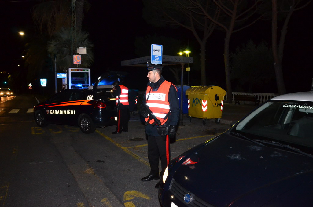 Ospedaletti: servizio di controllo dei Carabinieri sull'Aurelia, molte auto fermate all'ingresso di Sanremo