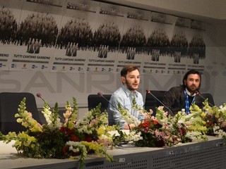 La Sala Stampa 'Lucio Dalla' ha incontrato Lorenzo Fragola in gara con il brano “Infinite volte”: “E' una canzone che mi piace tanto, molto sincera e che non utilizza giri di parole, mi piace tanto cantarla. Quando l'abbiamo ascoltata per la prima volta, abbiamo pensato che non ci fosse posto migliore se non quello di presentarla qui al Festival. Questa canzone non parla di una persona in particolare, ma un po' di tutte, è un brano universale e mi fa piacere che ad oggi sia al primo posto tra i brani passati dalle radio.”