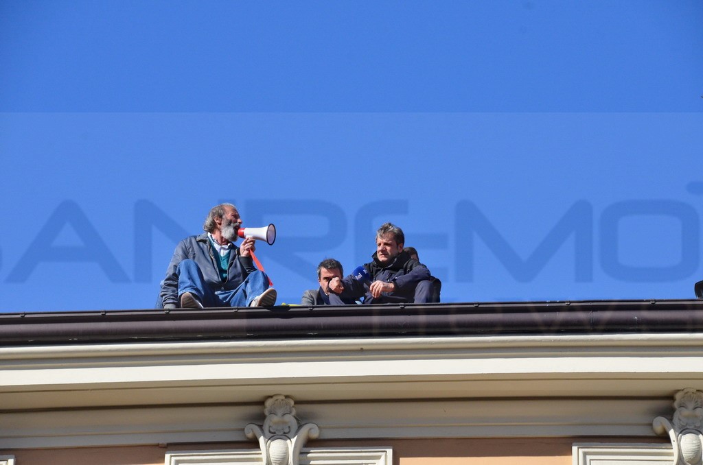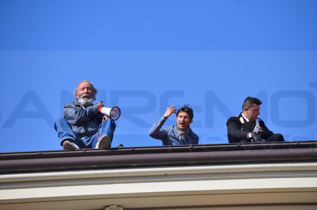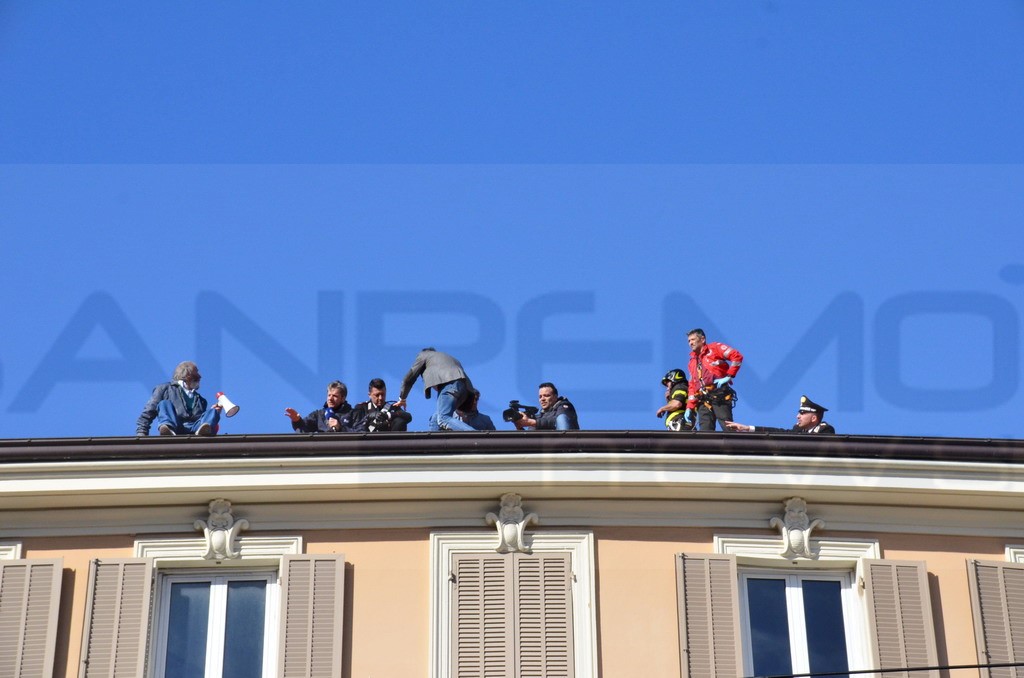 L'uomo di circa 70 anni aveva provato a fare la stessa cosa pressappoco cinque anni fa, proprio durante la settimana del Festival. Sul tetto sono saliti il dirigente del Commissariato Lorenzo Manso e il Comandante dei Carabinieri Paolo De Alescandris.