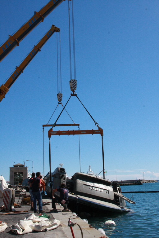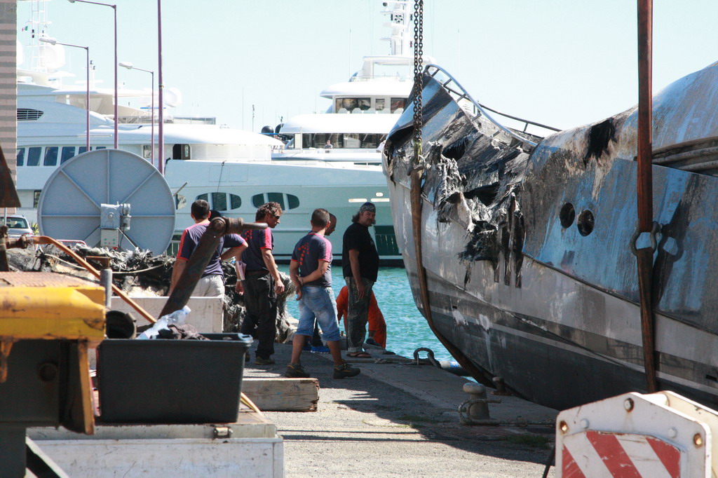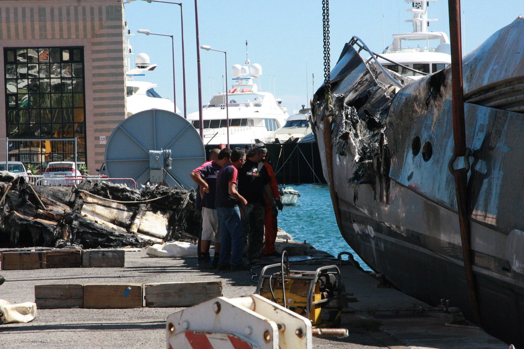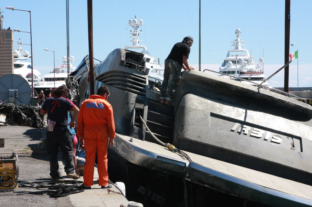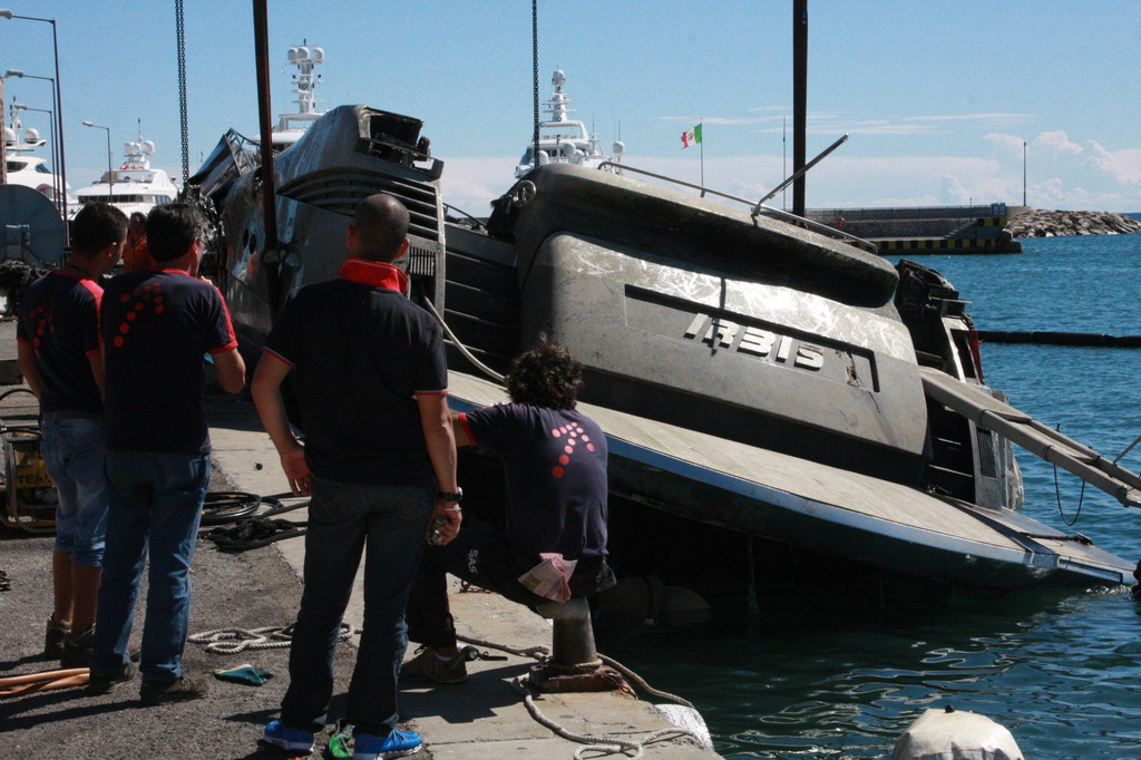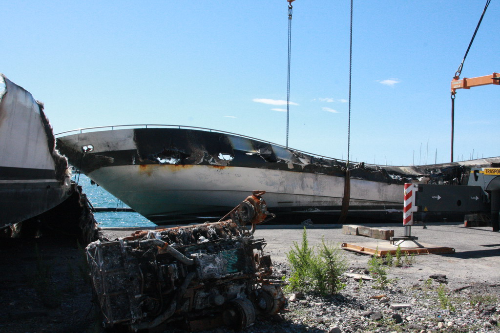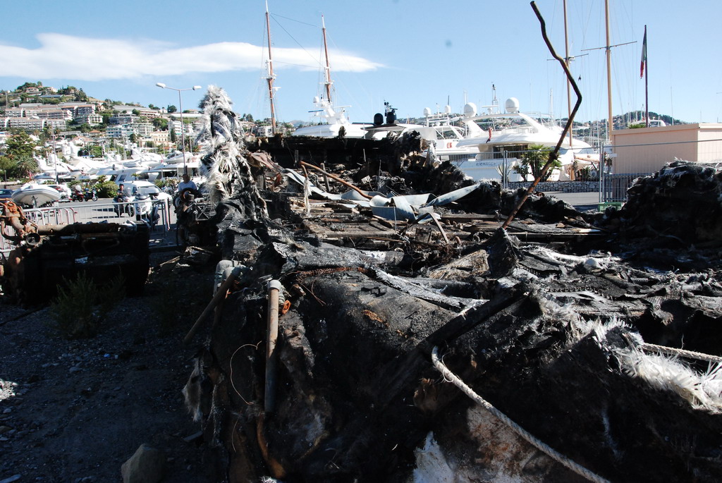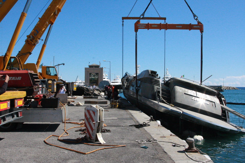 Sanremo: liberato il piazzale di Portosole da ciò che rimaneva del relitto dell'Irbis bruciato nel 2012