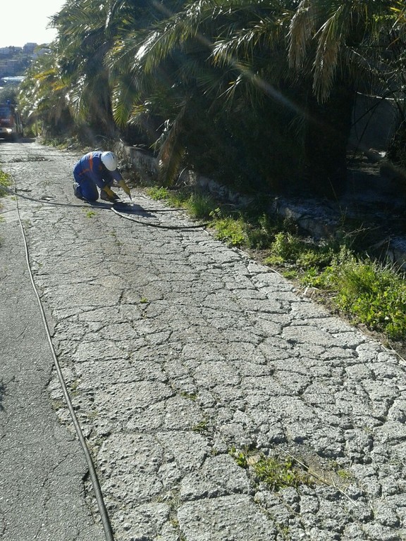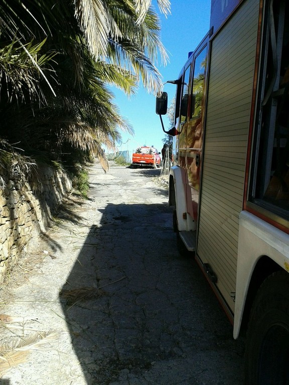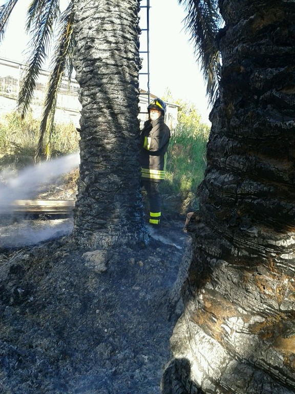 Vigili del Fuoco in azione, questo pomeriggio a Santo Stefano al Mare dove è scoppiato un incendio in un palmeto.