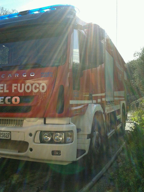 La squadra è ancora all'opera per domare le fiamme che si sono propagate nel primo pomeriggio