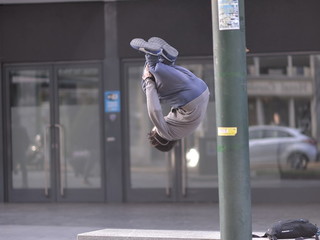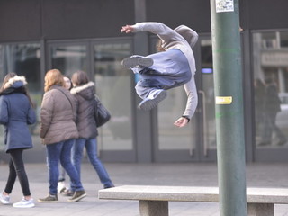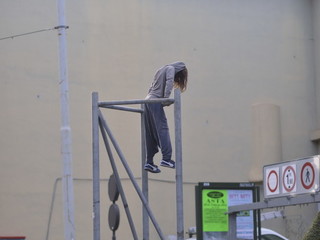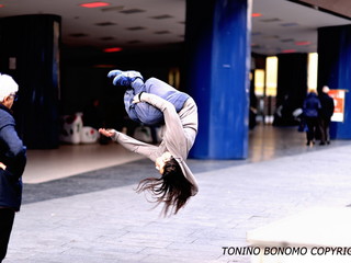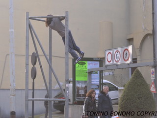 Alcuni ragazzi si sono esibiti di fronte al Palafiori in diverse azioni funamboliche, a tratti anche pericolose.