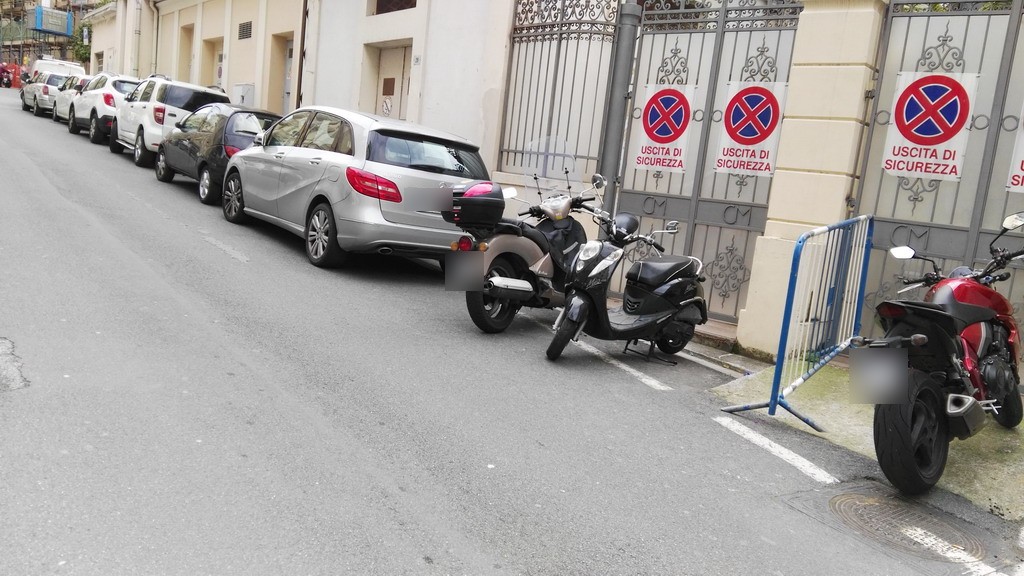 Sanremo: moto parcheggiate di fronte all'uscita di sicurezza del Casinò... e se dovesse scoppiare un incendio?
