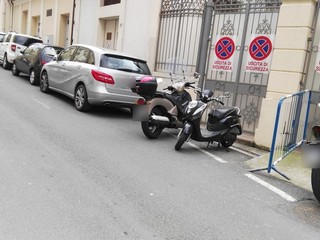 Sanremo: moto parcheggiate di fronte all'uscita di sicurezza del Casinò... e se dovesse scoppiare un incendio?