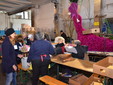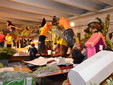 Proseguono senza sosta, all'interno del deposito della Riviera Trasporti, i lavori dei 'carristi' che stanno allestendo le splendide opere che sfileranno domenica per 'SanremoInFiore. Il lavoro andrà avanti per due giorni e, solo nella notte tra sabato e domenica terminerà.