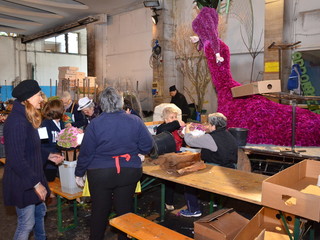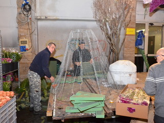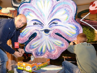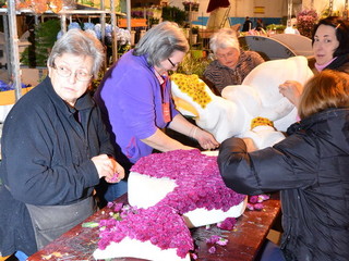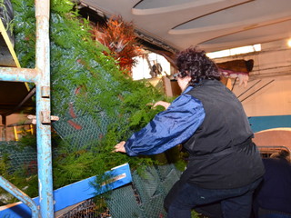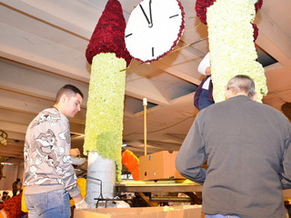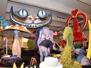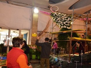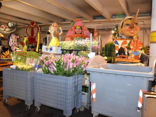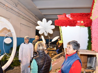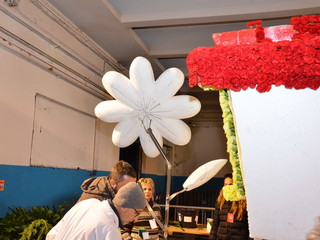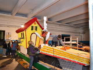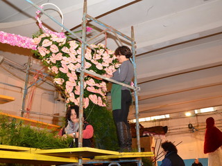 Proseguono senza sosta, all'interno del deposito della Riviera Trasporti, i lavori dei 'carristi' che stanno allestendo le splendide opere che sfileranno domenica per 'SanremoInFiore. Il lavoro andrà avanti per due giorni e, solo nella notte tra sabato e domenica terminerà.