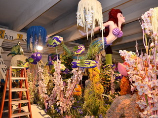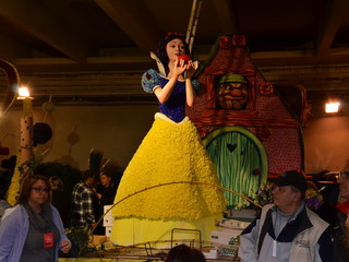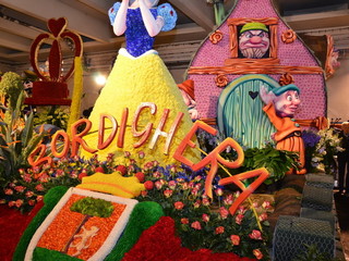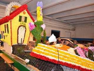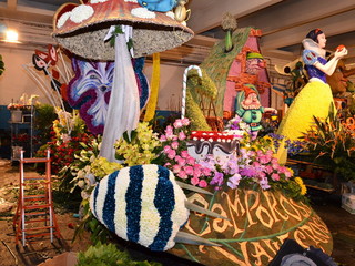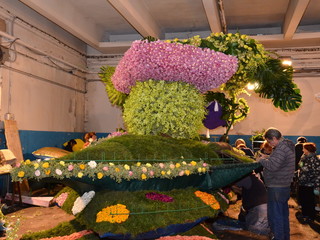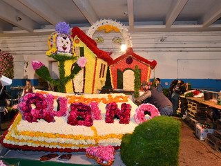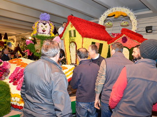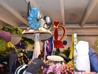 La sfilata prevede 3 giri del percorso con l’ultimo dedicato alla diretta di ‘Linea Verde’ su Rai Uno, che si collegherà per circa un’ora ed i carri fioriti saranno intervallati da bande musicali e gruppi coreografici, che si sono esibite ieri, nel centro della città. Il tema del weekend di quest’anno è ‘C’era una volta… il magico mondo delle fiabe’ ed è interamente gestito dall’ufficio turismo del Comune di Sanremo, che ha proposto per il carro fuori concorso della città dei fiori, le rappresentazioni di Antonio Rubino: un libro aperto da cui escono le lettere di Sanremo nella parte anteriore e, in quella posteriore due casette sovrastate dalla Luna con, in quella centrale, un prato disseminato da fiori giganti. Verranno utilizzati 20mila garofani, 10mila ranuncoli, 1.000 foglie di aspidistra, 100 kg. di ginestra, 2.000 steli di myriocicladus e 1.000 foglie di phormium.