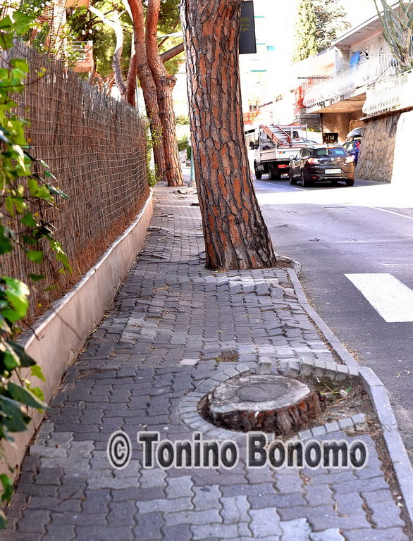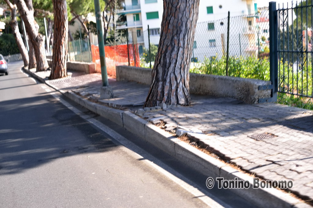 Sanremo: marciapiedi ed asfalti in via Padre Semeria nuovamente distrutti dalle radici dei pini marittimi