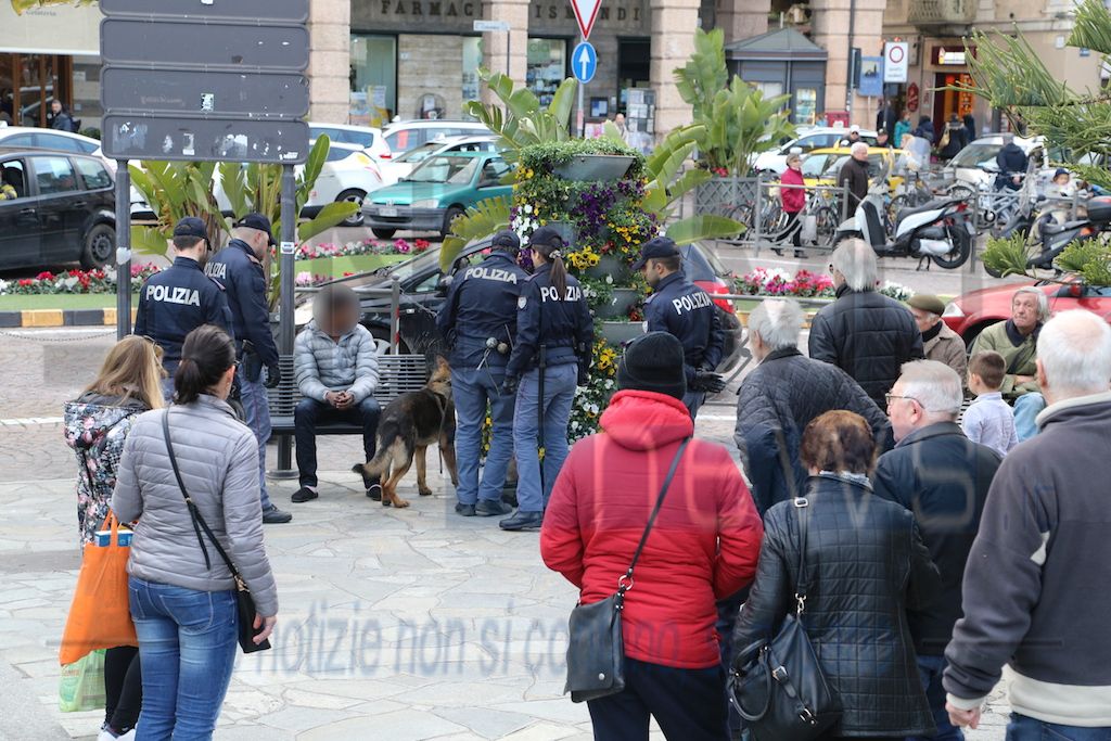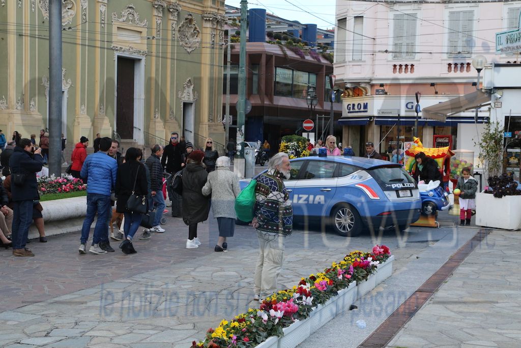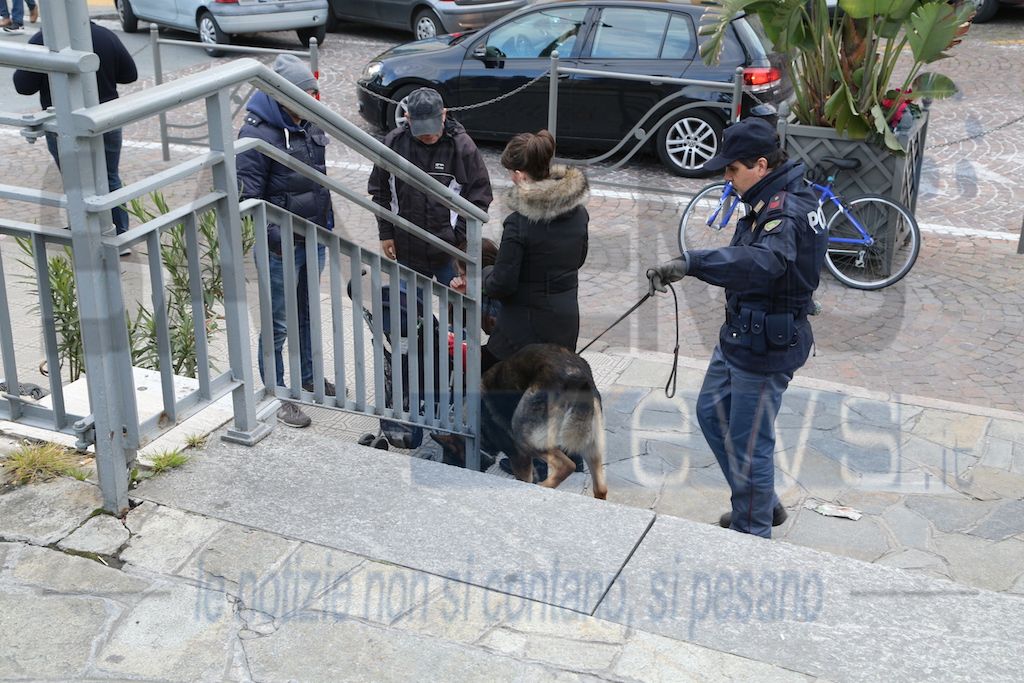 Questo pomeriggio blitz della Polizia in piazza Colombo a Sanremo. Gli agenti del nucleo prevenzione crimine di Genova con l’ausilio dell’unità cinofila hanno passato al setaccio la piazza.