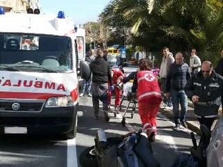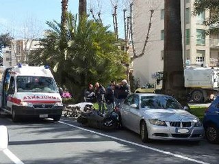 Sanremo: auto investe centauro in Corso Orazio Raimondo uscendo da un parcheggio non consentito, qualche contusione per il motociclista