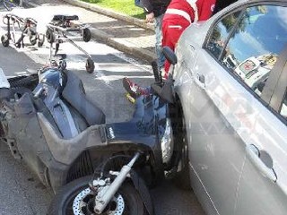 Lieve incidente in Corso Orazio Raimondo, un'auto Bmw in uscita da un parcheggio non consentito, proprio dietro la fontana dello 'Zampillo', ha investito un motociclista che procedeva verso Piazza Colombo, a bordo di un X Max.