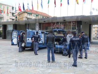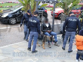 Questo pomeriggio blitz della Polizia in piazza Colombo a Sanremo. Gli agenti del nucleo prevenzione crimine di Genova con l’ausilio dell’unità cinofila hanno passato al setaccio la piazza.