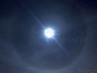 Si tratta di un fenomeno particolare e raro noto come ‘Alone di 22°’. L’anello è l’espressione di un fenomeno ottico che di solito caratterizza il sole ma, proprio come è successo stanotte, può anche essere osservato guardando il nostro satellite. L’alone, caratterizzato proprio dalle sue grandi dimensioni, si forma quando nel cielo, all’interno di sottilissimi cirri, sono presenti milioni di cristallo di ghiaccio e risultano allineati in modo che la luce venga riflessa e rifratta.