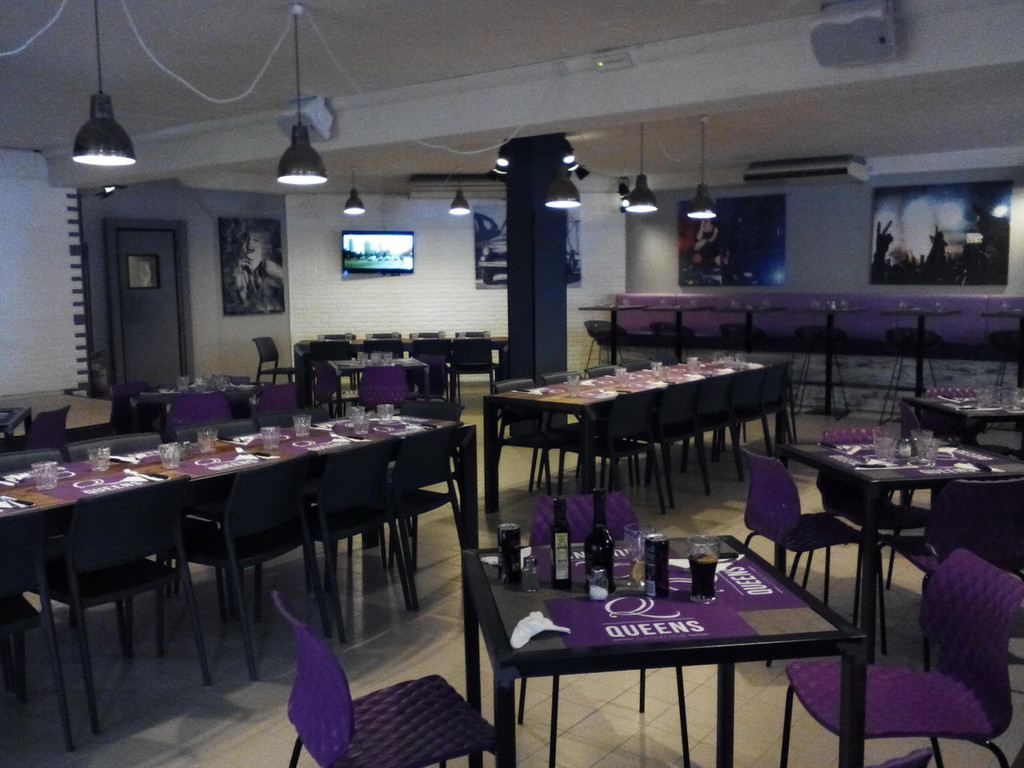 Grazie a un metodo di lavoro importato dalle grandi realtà europee e americane, il locale ha scalato in pochi mesi la classifica di TripAdvisor, il più famoso portale di recensioni, e nel tempo è sempre stato attento alle esigenze dei clienti, mantenendo un'ambientazione moderna con continui accorgimenti e opere di restyling. Si tratta di un locale dinamico, giovane e gestito da giovani; i titolari, Saverio e Laura, hanno reso il Queens un locale adatto a tutti, famiglie comprese: per i più piccini, infatti, è presente un'area bimbi chiusa e sorvegliata da una tata diplomata al socio psicopedagogico che li fa giocare e truccare. Nel frattempo, i genitori potranno trascorrere un piacevole momento, guardando per esempio un evento sulle piattaforme Sky e Mediaset Premium e scegliendo tra le specialità della casa. Servizio ristorante e servizio pizzeria, ma anche hamburgeria, steakhouse, texmex e birre artigianali, più di 23 per la precisione, prodotte in tutta Europa. Altre specialità sono le tapas la cucina texmex e la cesar salad. Il locale può vantarsi di essere specializzato nella carne, lavorando insieme a un’azienda leader del settore in Italia; il loro hamburger è messo a punto dall’Università delle scienze gastronomiche di Bologna e il pane con cui viene condito è sfornato fresco da panifici locali.