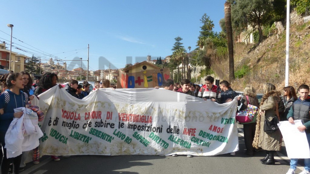 Tra le 2mila persone dei cortei, tra cui moltissimi gli studenti di tutte le scuole della provincia, erano presenti anche i ragazzi delle medie Cavour di Ventimiglia da sempre impegnati in attività di sensibilizzazione contro la Mafia, ultimo ad esempio l’incontro, nel plesso scolastico, con l’ex Procuratore Caselli. I giovani alunni, partiti dalla stazione di Ventimiglia, sono infatti saliti sul treno alle ore 9:30 ‘armati’ di striscioni: “C’è di meglio che subire le imposizioni delle mafie”, “Camminiamo liberi dicendo no alla mafia”, “I bischeri della 3°A non hanno paura”.