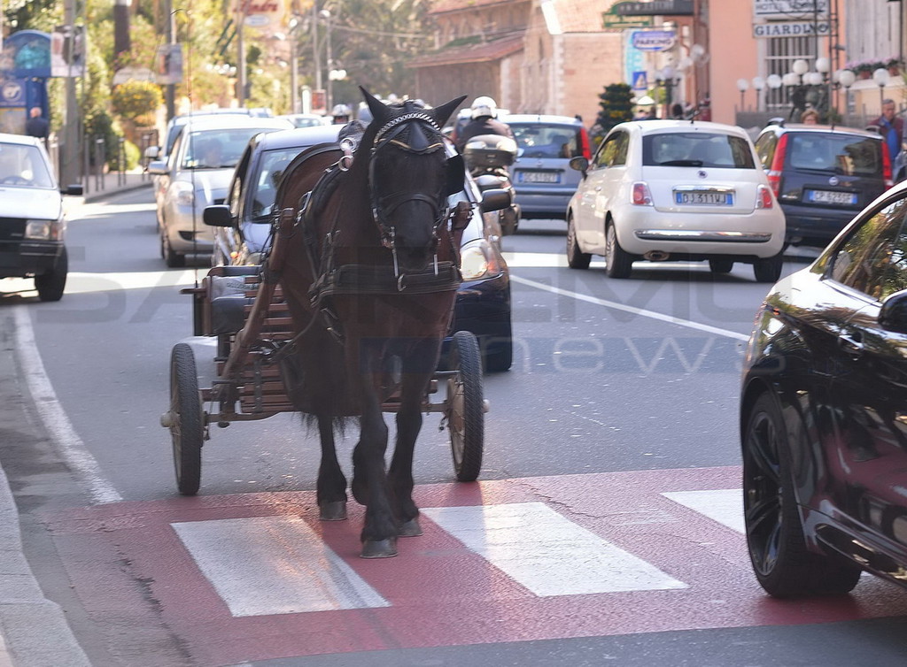 Al tempo degli smartphone, degli aerei supersonici, della realtà virtuale, che ci permettono di raggiungere in un attimo ogni luogo del pianeta, c’è ancora chi la vita se la vuole godere con i suoi tempi… ed ecco spuntare alla Foce un simpatico signore alla guida di un calessino (vedi foto di Tonino Bonomo). Imperterrito, fra i clacson e i passanti incuriositi, lui sembra volerci dire…ve la ricordate la Sanremo di un tempo? Quando andavamo la domenica sul lungomare o ai giardinetti a prendere il gelato e la stazione dei treni era ancora in piazza Cesare Battisti? Sì, perché una volta proprio appena scesi dal treno queste carrozzelle erano lì ad aspettare i turisti per far ammirare loro le bellezze locali.