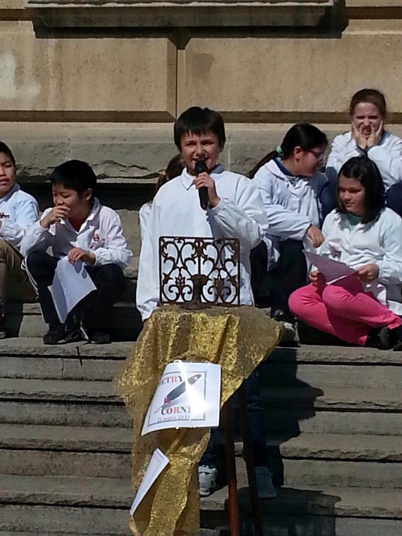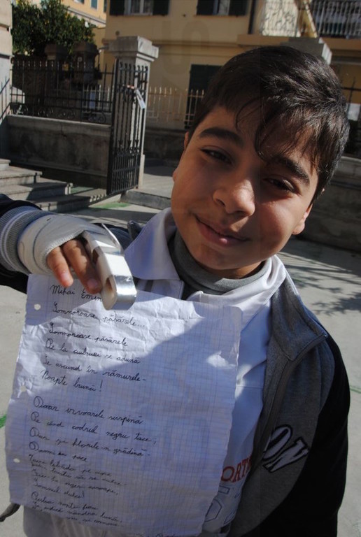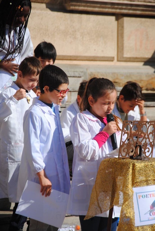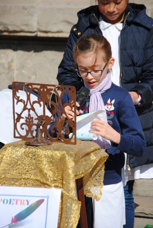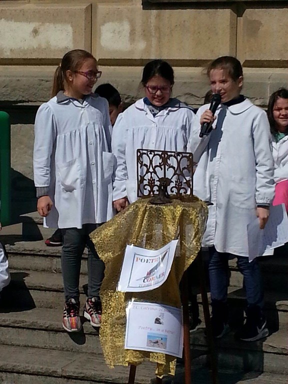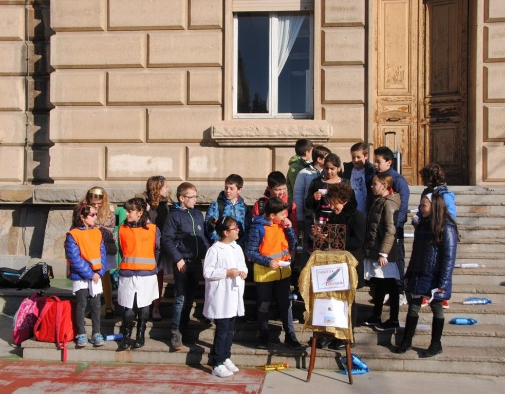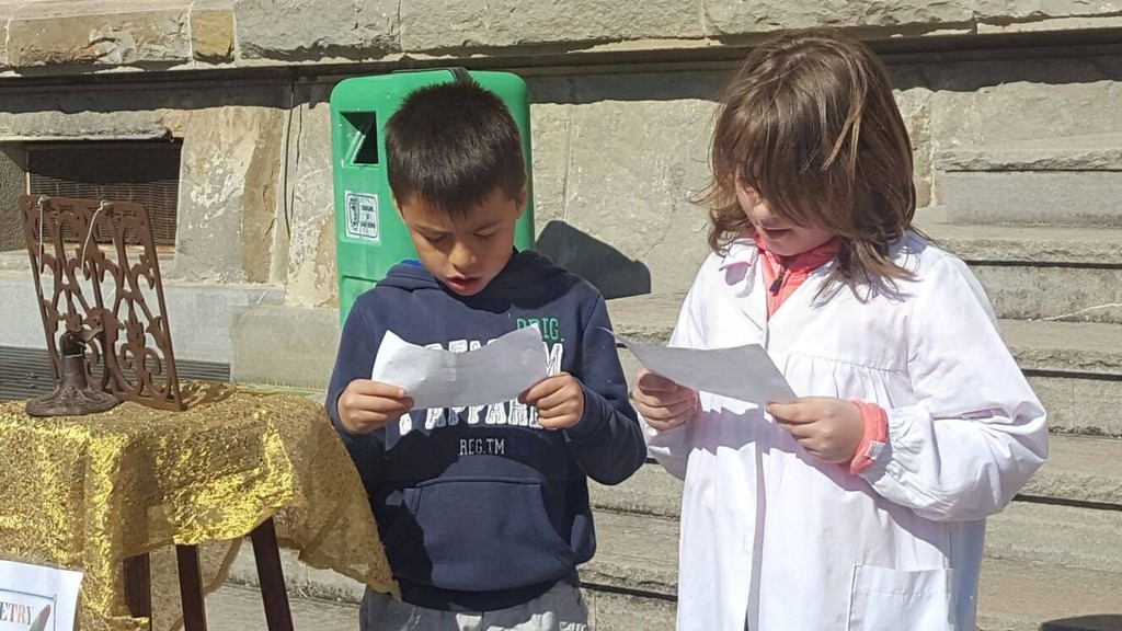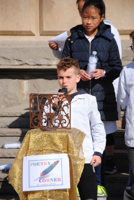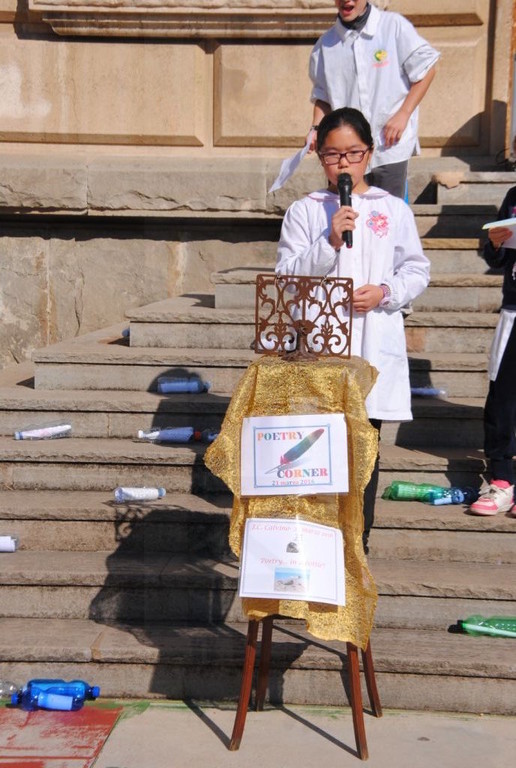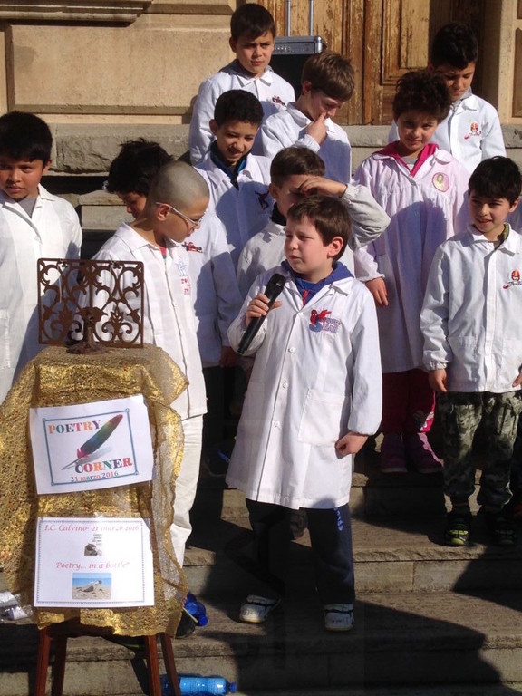 Oltre a mettere i loro messaggi poetici in bottiglia, gli alunni della Primaria A. Volta e della Secondaria di primo Grado Italo Calvino, nell'arco di tutta la giornata, hanno recitato ad alta voce nel Poetry Corner allestito nel cortile della scuola: sono state recitate poesie di autori famosi e non, a tema e non...Chi ha declamato poesie sul mare, citando anche canzoni di Enrico Ruggeri (Il mare d'inverno) e di Lucio Dalla (Com'è profondo il mare), chi ha recitato poesie in cinese, in rumeno, filastrocche sui mesi, sulla natura, sull’amicizia, chi da solo, chi in compagnia . Molti i genitori che hanno assistito alle performance poetiche dei loro bambini e chissà che l'anno prossimo qualcuno non voglia partecipare al nostro Poetry Corner!!