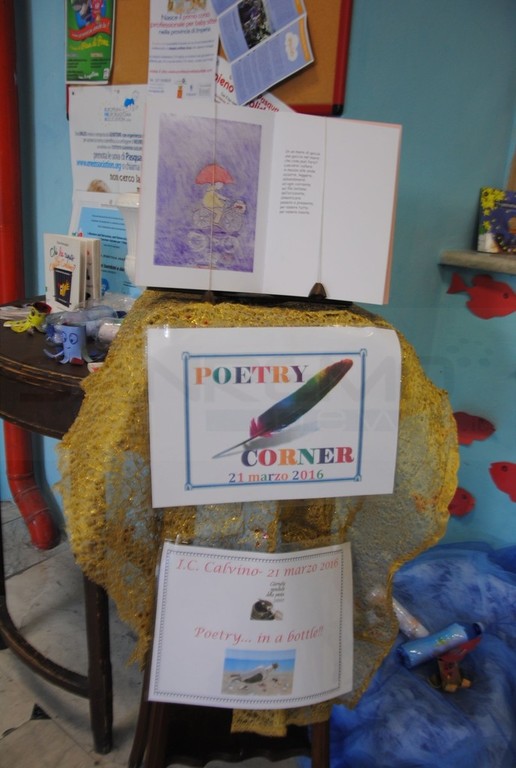 Il 21 marzo, primo giorno di primavera, è da tempo Giornata Mondiale della Poesia. All'I.C. I. Calvino è il terzo anno in cui alunni e docenti decidono di celebrare questa ricorrenza. Il primo anno era stato allestito un "Albero della Poesia" ai cui rami erano state appese le poesie di tutti , lo scorso anno il tema era "Chi trova un Poeta trova un Tesoro" con tanto di baule colmo di poesie, quest'anno il titolo della giornata è stato "Poetry... in a bottle!" e le poesie sono state inserite nelle bottiglie di plastica, come messaggio di speranza e di salvezza