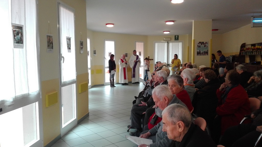 Così, alle 15,30 insieme agli Ospiti della struttura, ai loro familiari e agli operatori che quotidianamente assistono con amorevole dedizione gli anziani, si sono percorse le stazioni che hanno portato il Signore alla croce. Molti dei presenti, in particolare gli Ospiti della struttura, ma anche alcuni famigliari, alcuni operatori e alcuni volontari, sono intervenuti leggendo i commenti delle varie stazioni.
