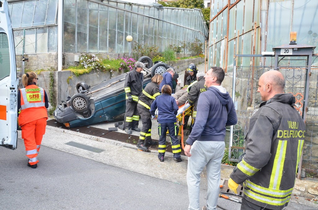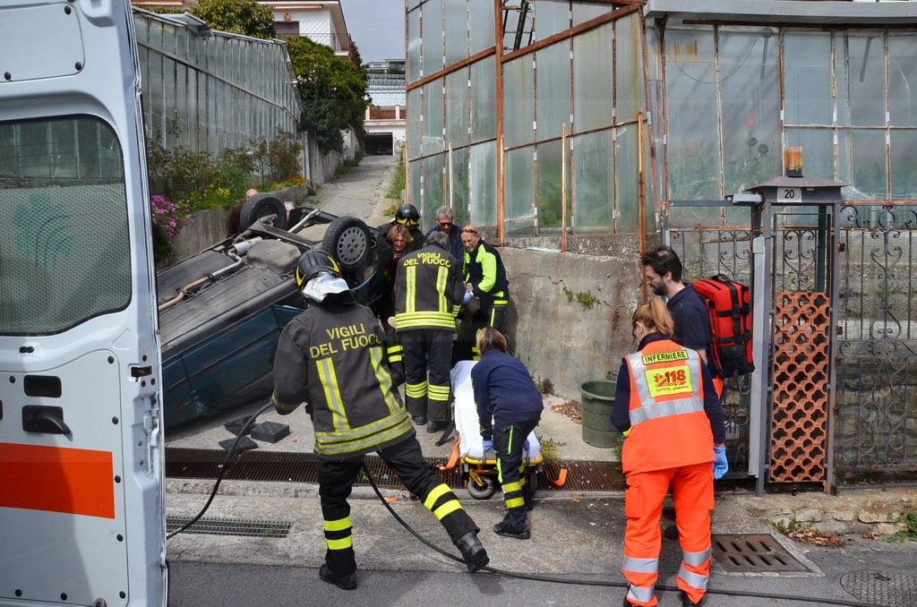 Sanremo: si capotta con l'auto in una stradina di via delle Rose, 88enne non riporta gravi ferite